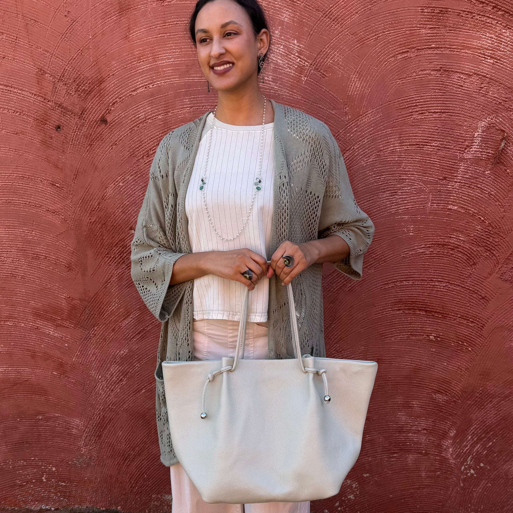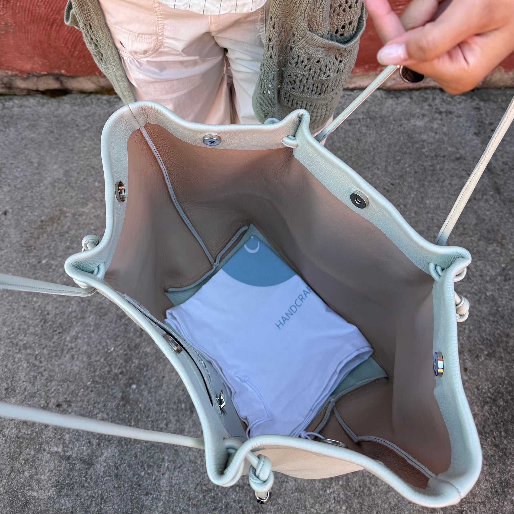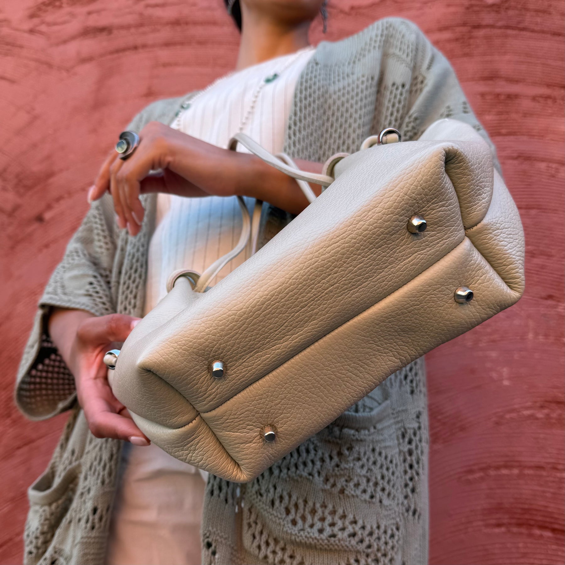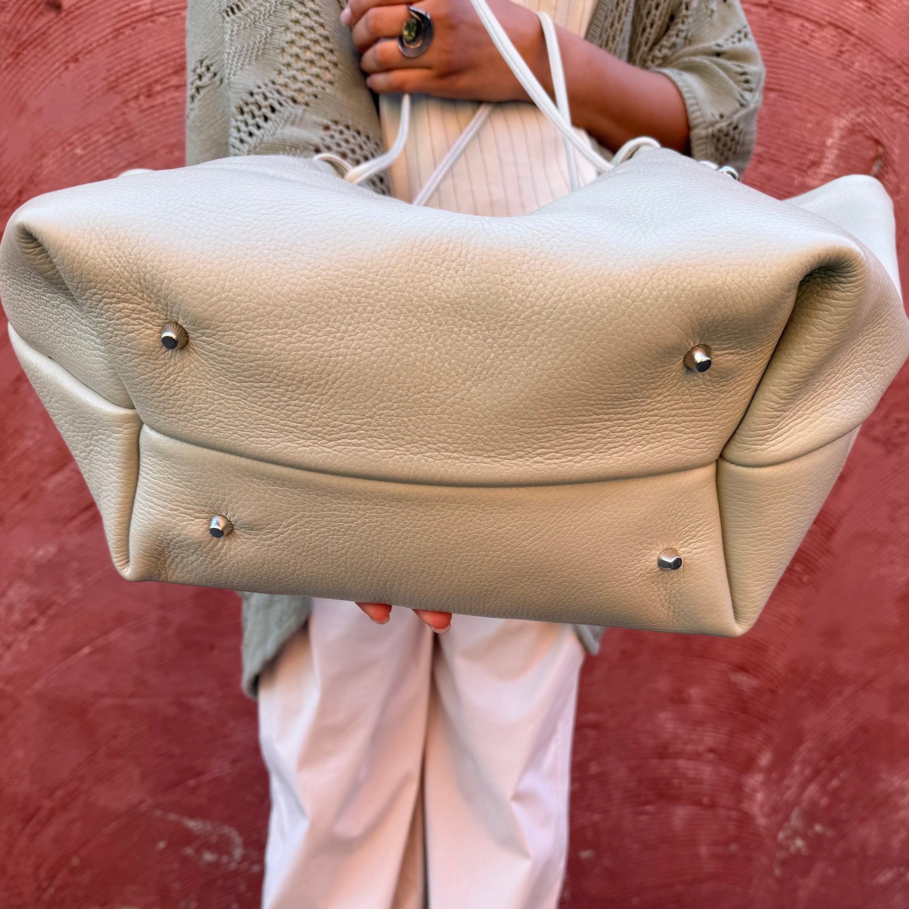 The softly structured silhouette keeps it relaxed yet refined, while thoughtful details like snap closures and protective feet make it as functional as it is beautiful. The interior offers plenty of room for your daily essentials (and then some), making it ideal for work, travel, or everyday errands.