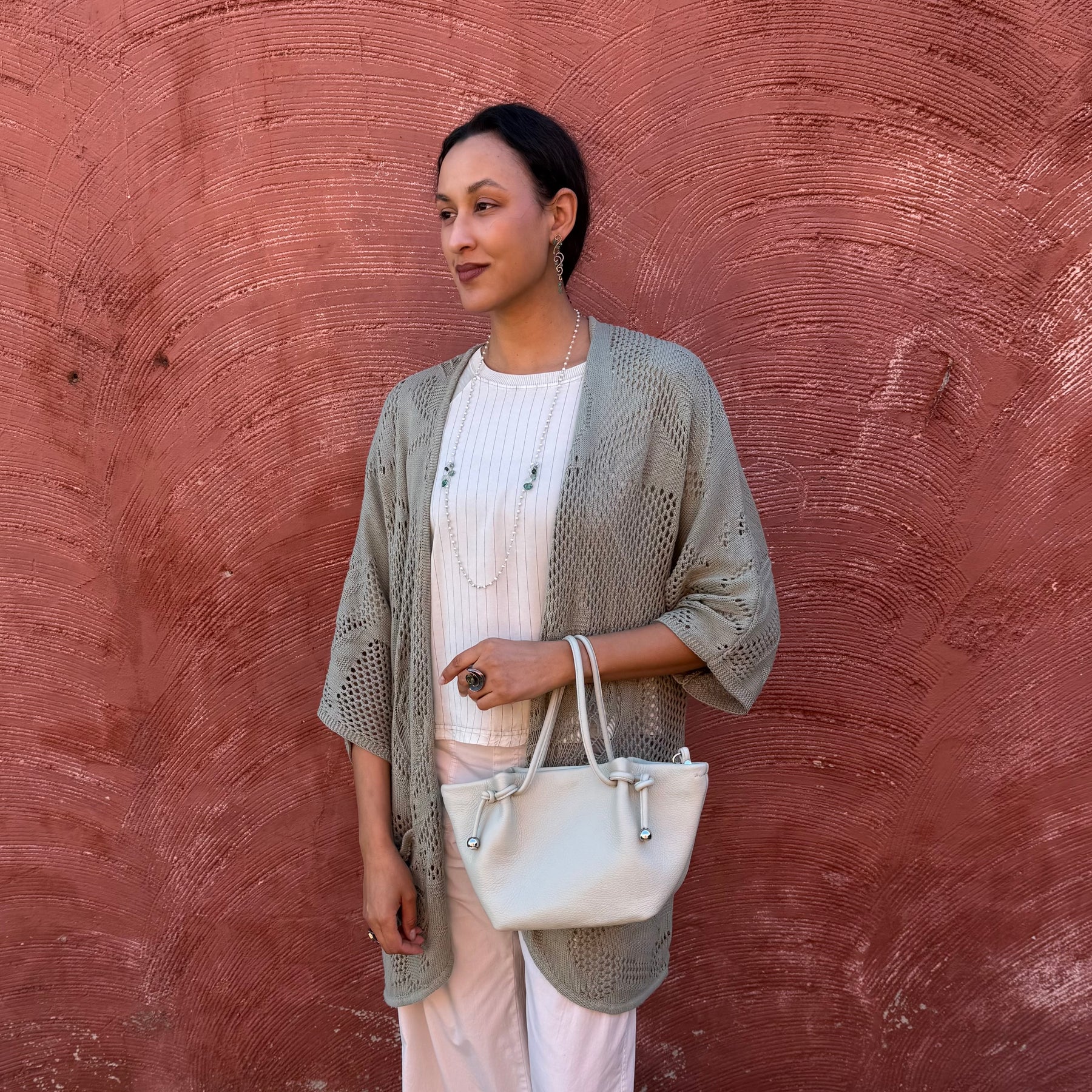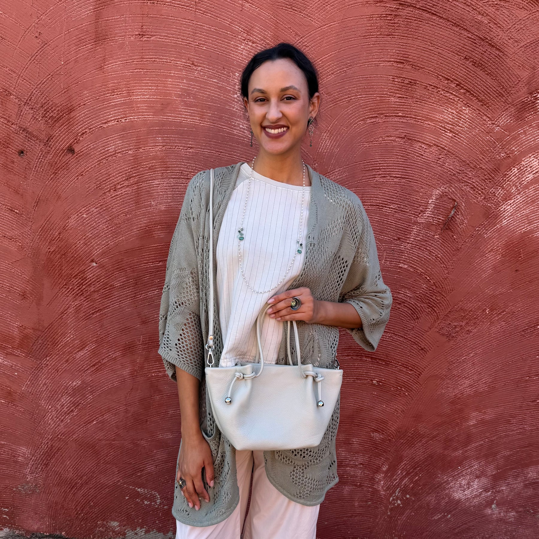 Carry it with soft neutrals for an easy, pulled-together look—or let it balance more colorful outfits as your grounding piece.