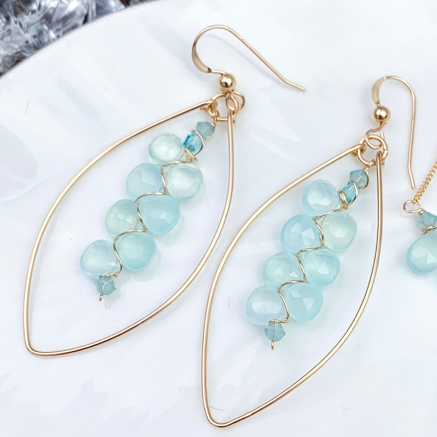A playful pop of color from the Emerald City Collection, the “Emerald City Charm” earrings feature mint green chalcedony accented by emerald quartz, opalite, and crystals—all hand-wrapped in sterling silver. These lightweight 1.5-inch earrings are part of a limited edition of two and offer an easy everyday style with a touch of fun. Chalcedony is said to bring calm and compassion, while emerald quartz encourages love, energy, and renewal.