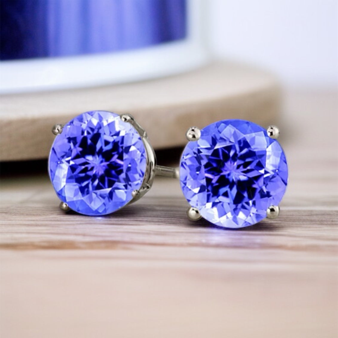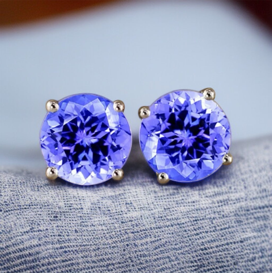 These tanzanite stud earrings showcase rich blue-violet tones with exceptional brilliance. Each round-cut tanzanite is faceted to catch the light beautifully, revealing depth and sparkle that feels refined yet effortless.