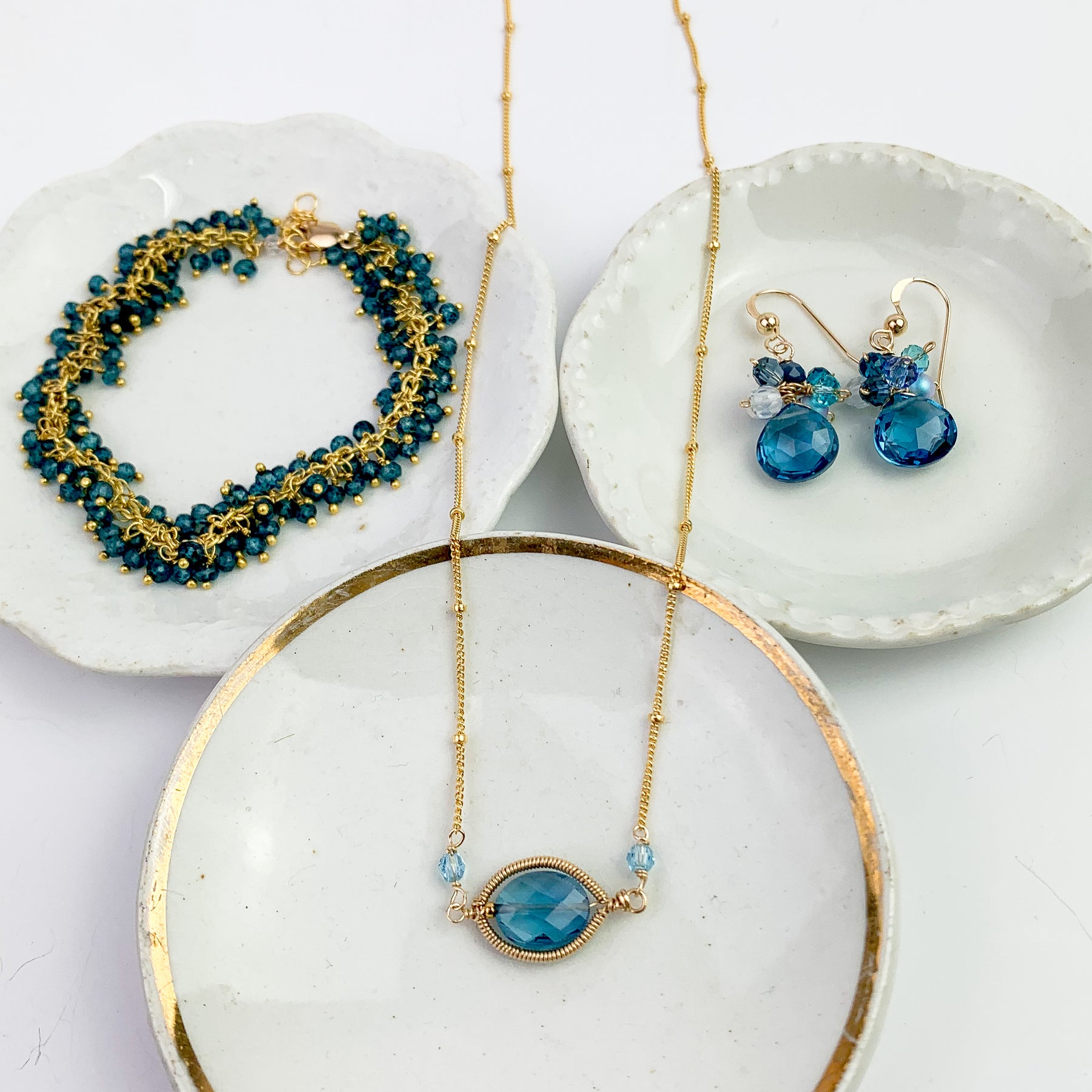 Perfect for brides, bridesmaids, and mothers of the bride or groom, our Bridal Jewelry Collection offers timeless, customizable designs. Choose from sterling silver, gold-filled, or oxidized silver, with over 30 gem colors available to match your wedding palette, making customization effortless.