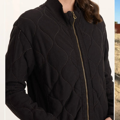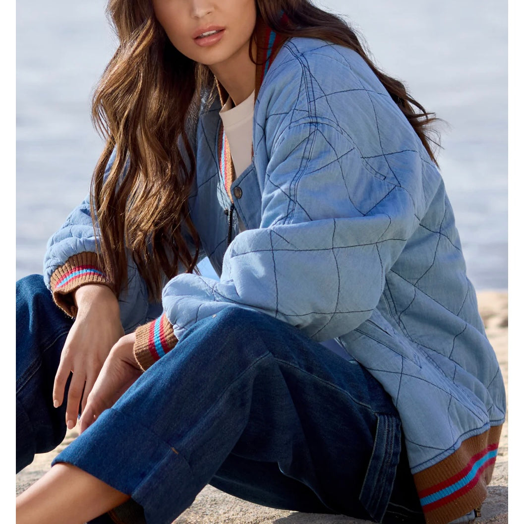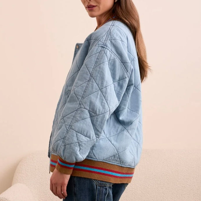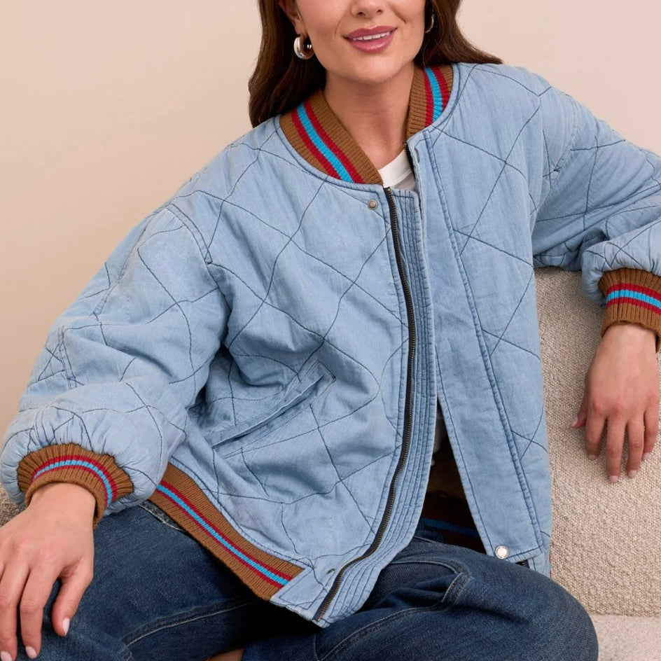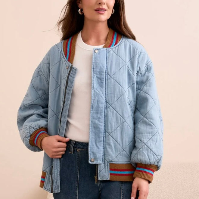 BLUE THREAD OVERSIZED COTTON QUILTED BOMBER JACKET