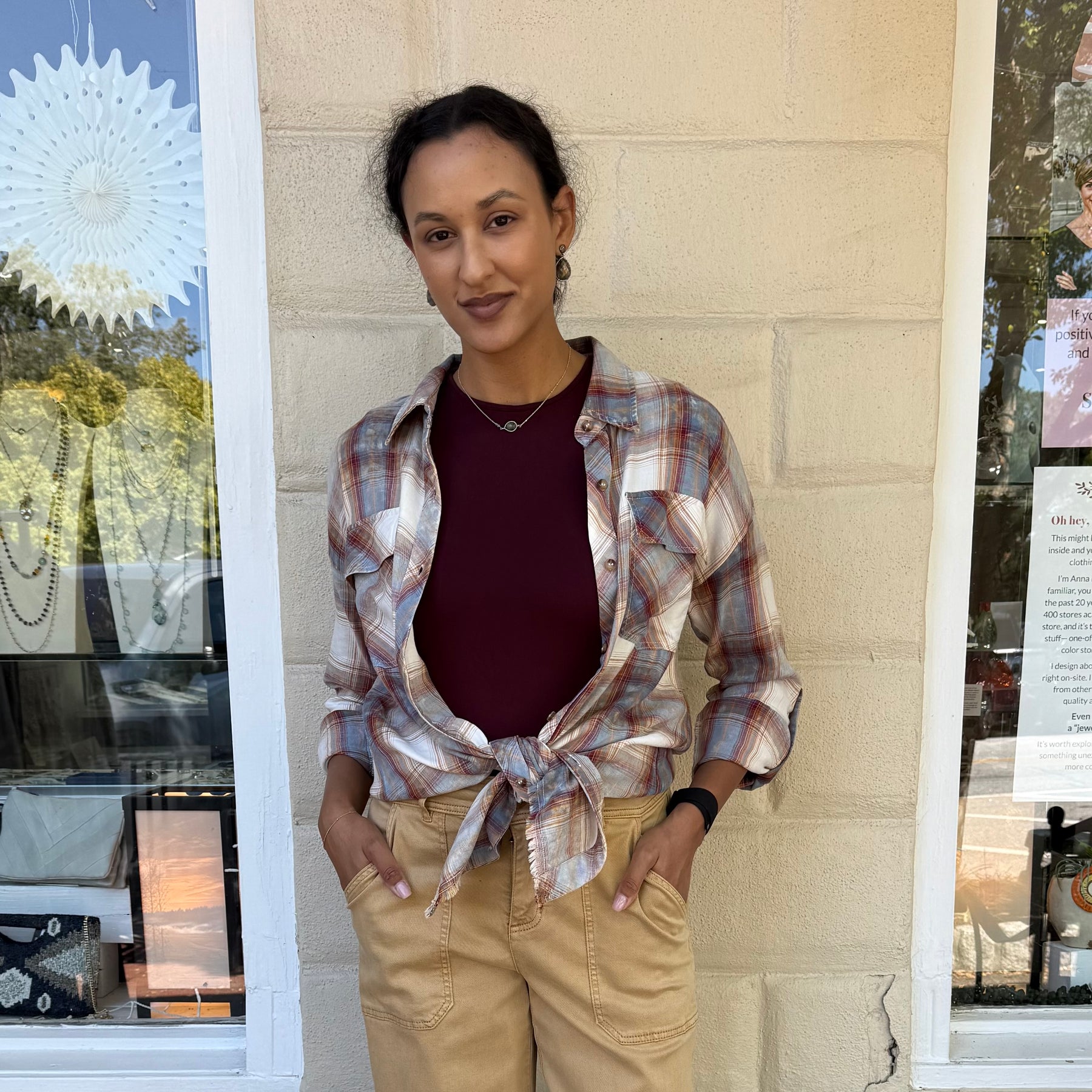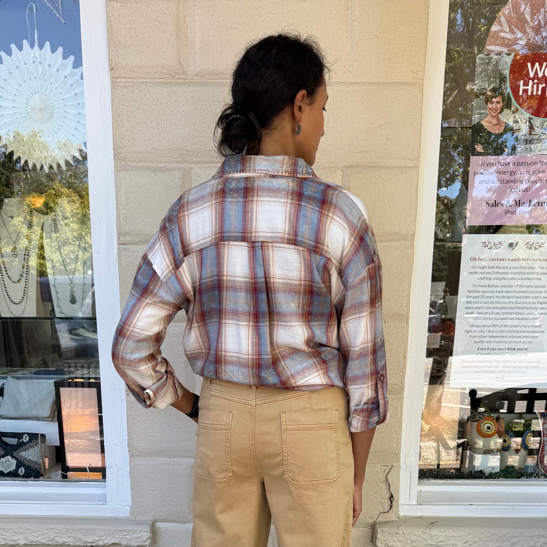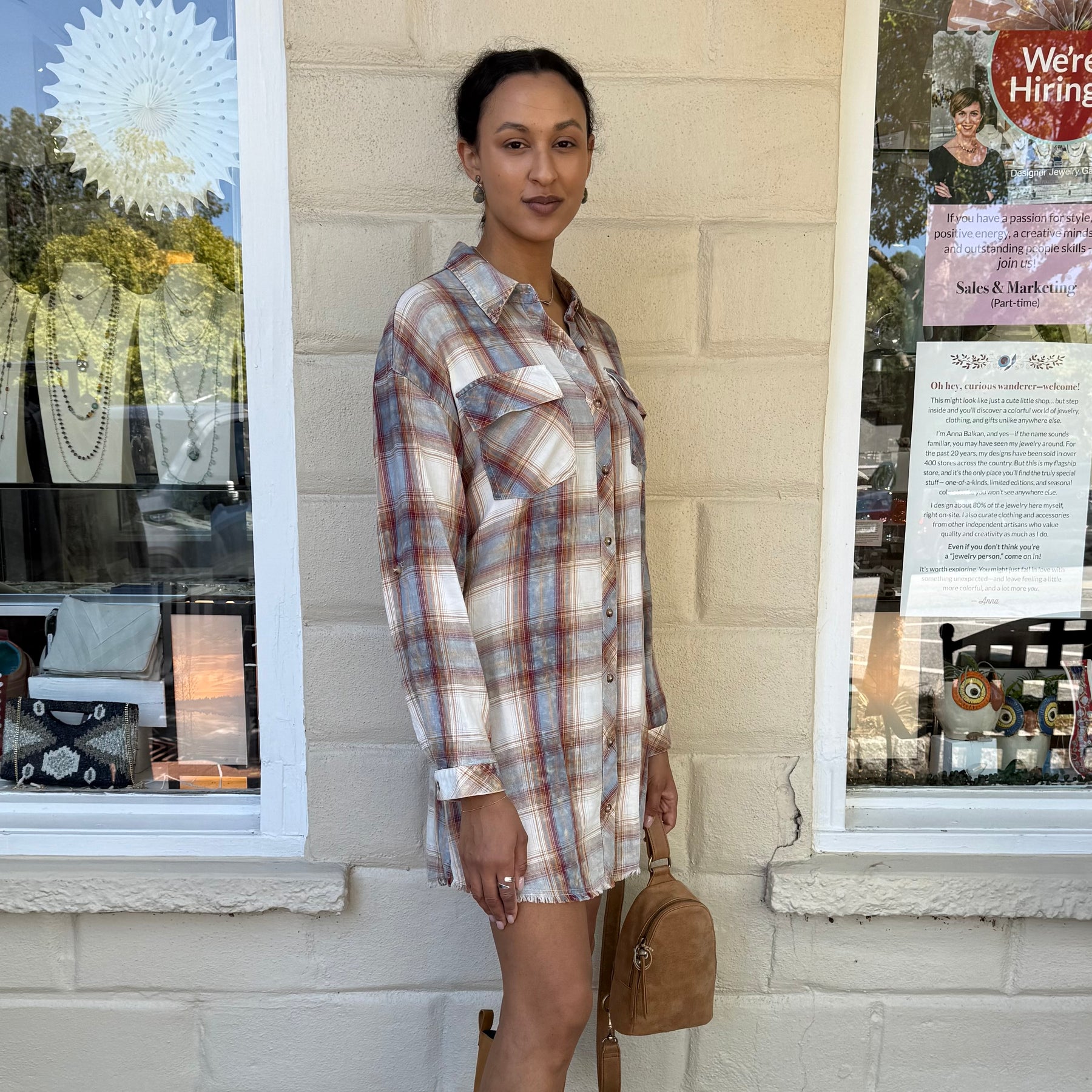 Perfect for Western-inspired looks, boho styling, beach outings, or classic everyday wear, this versatile shirt transitions seamlessly from casual days to dressed-up evenings. Its cozy yet breathable fabric blend makes it an ideal fall and winter staple.
