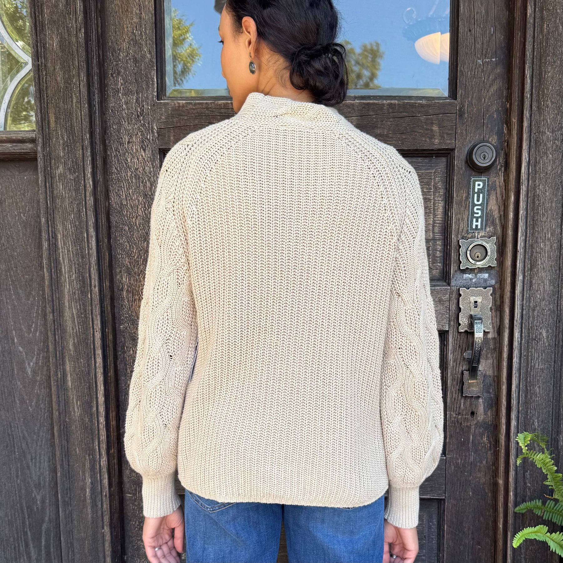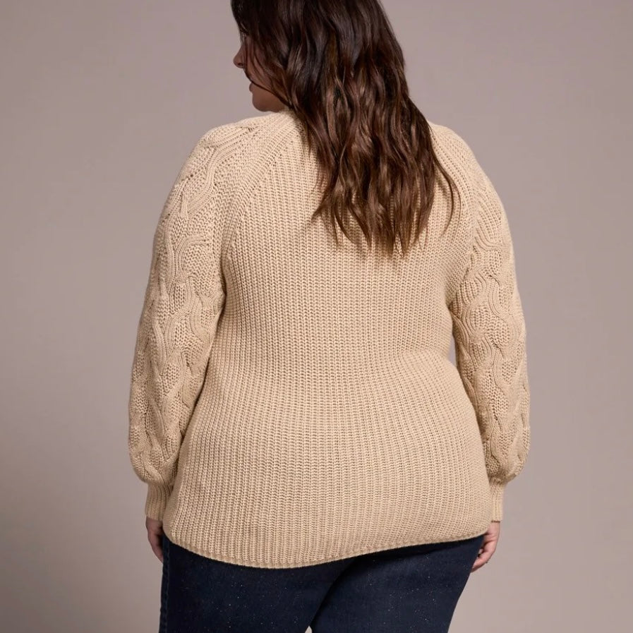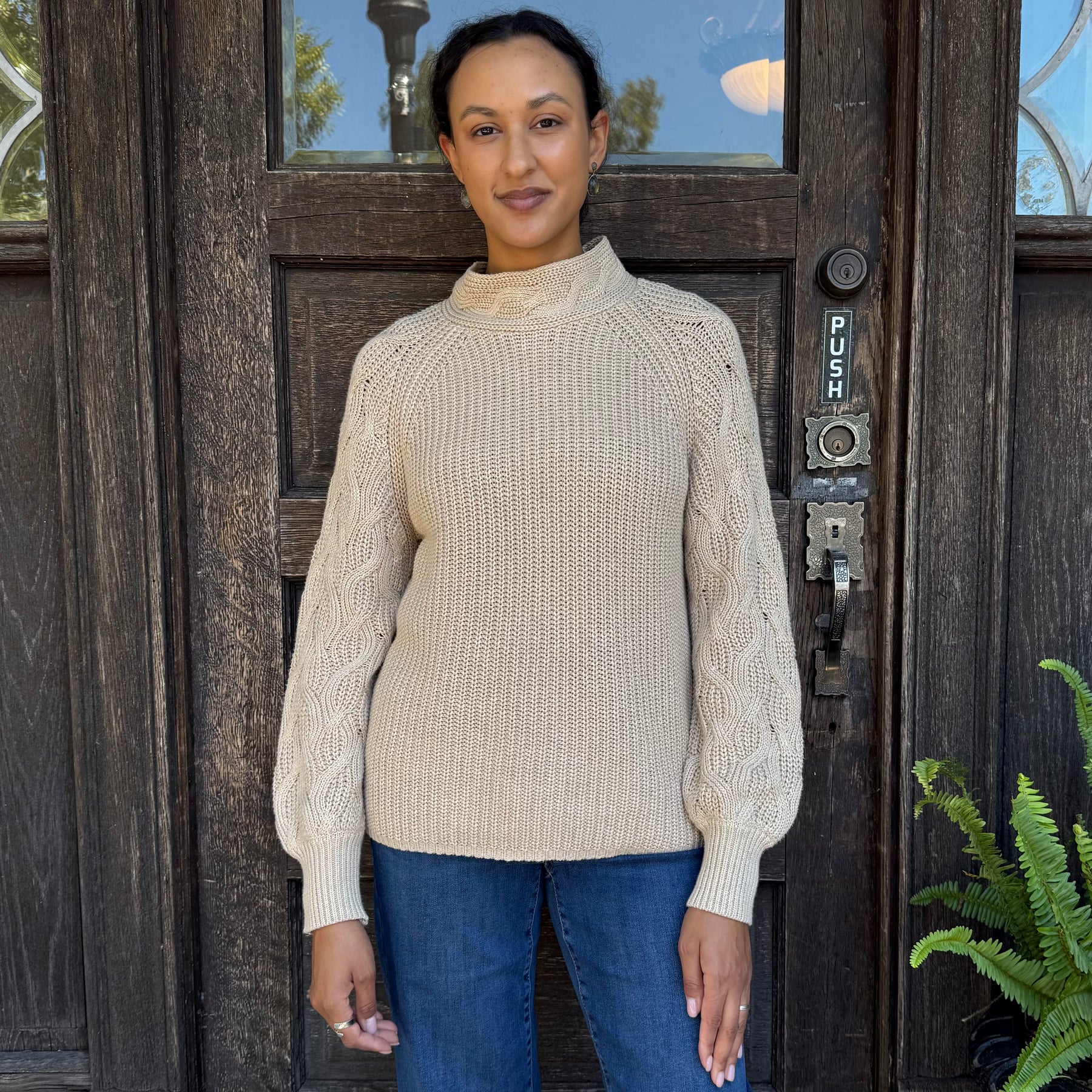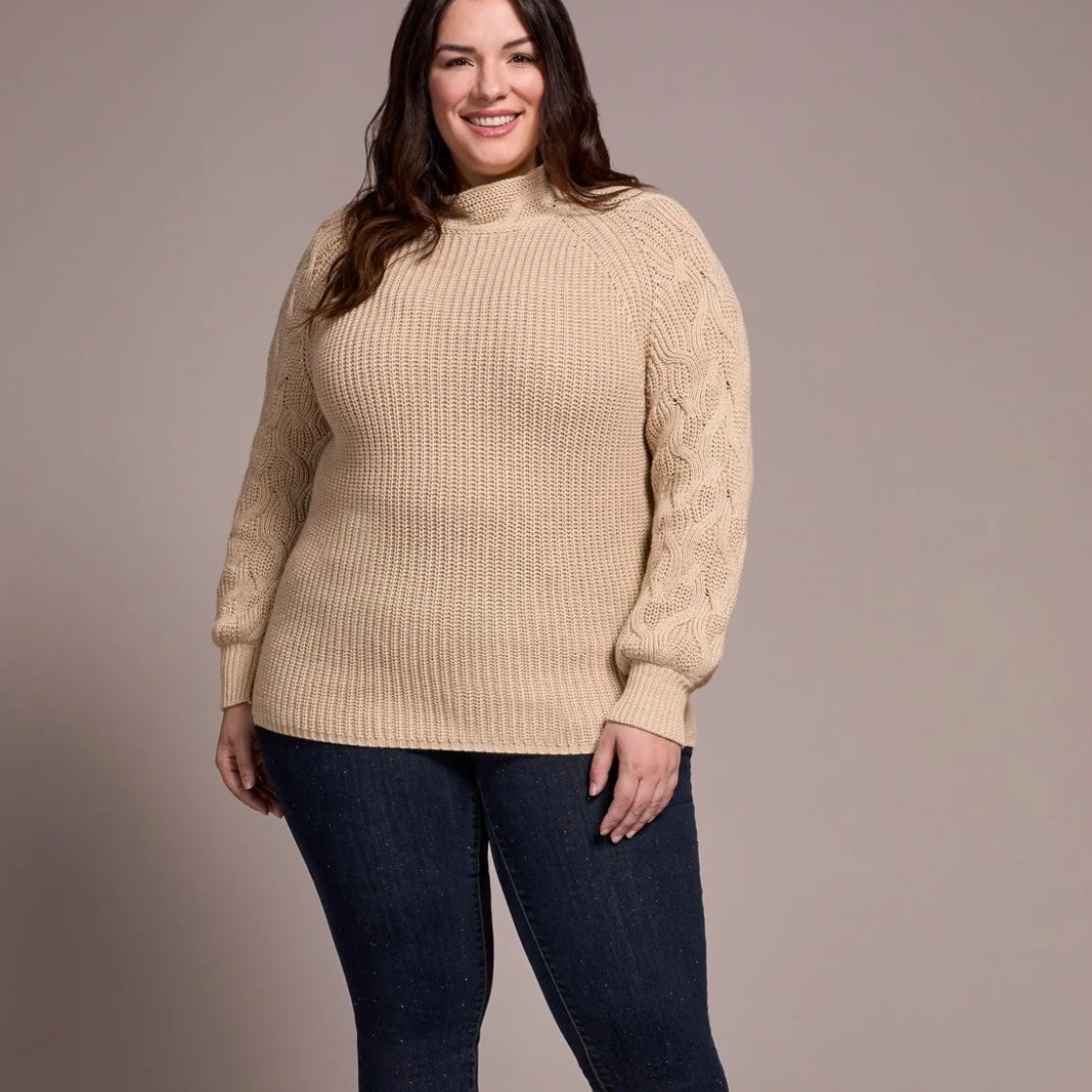 Mock neck Long sleeves Fitted cuffs Cable knit Combed cotton