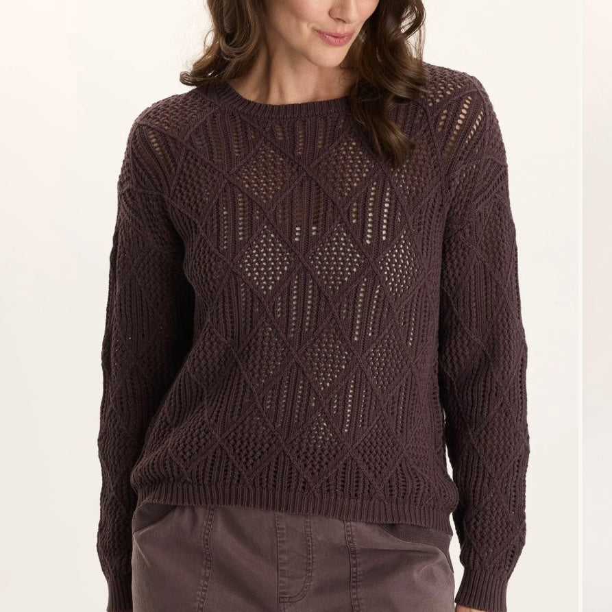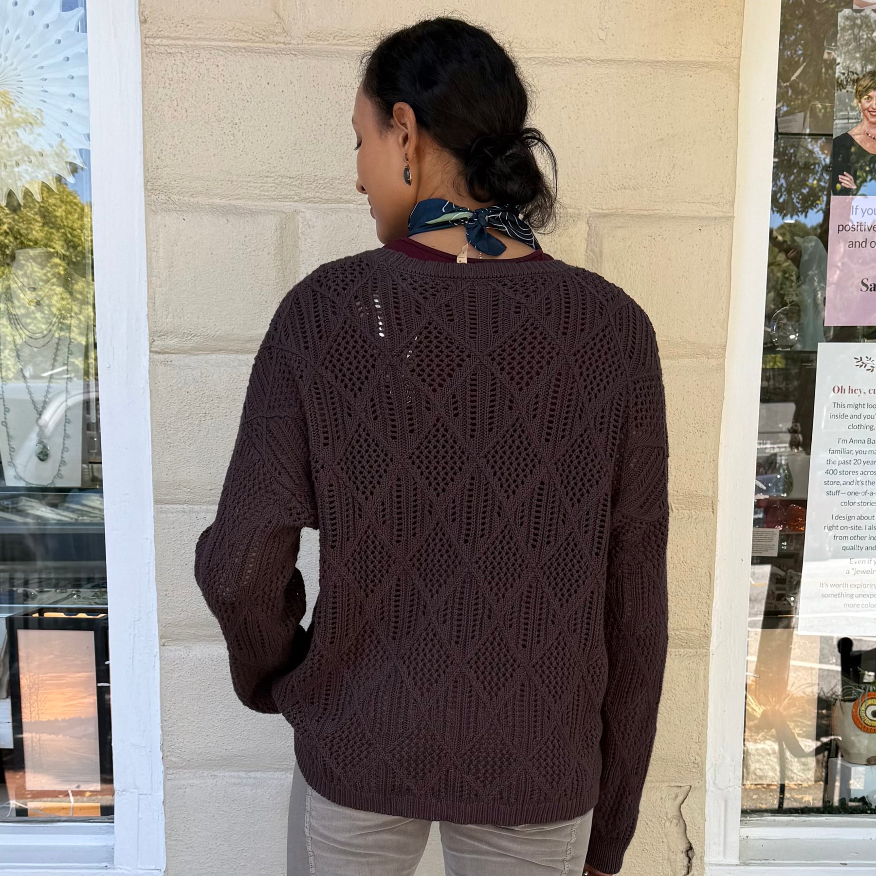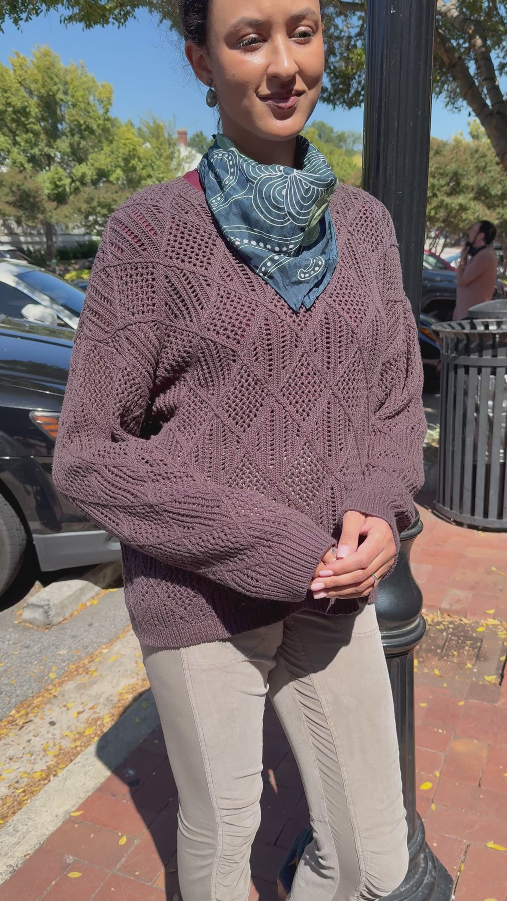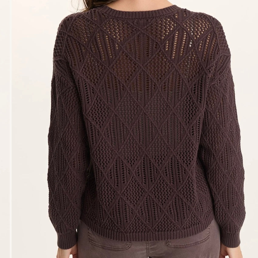 Crochet XCVI bistro pigment color (plum) sweater. 100% cotton