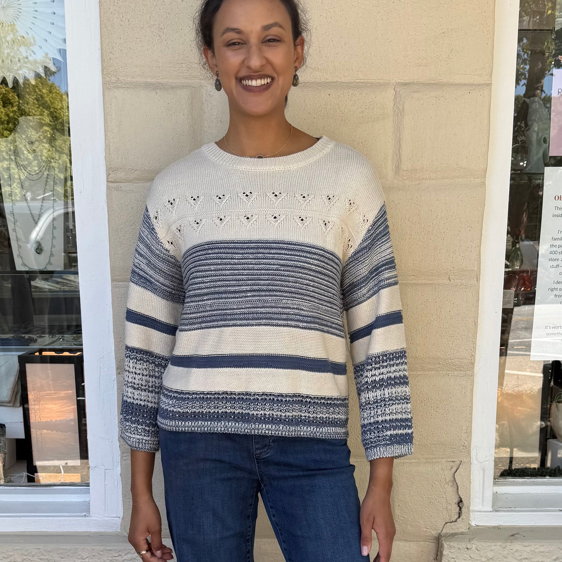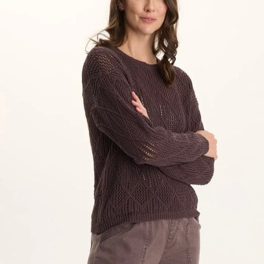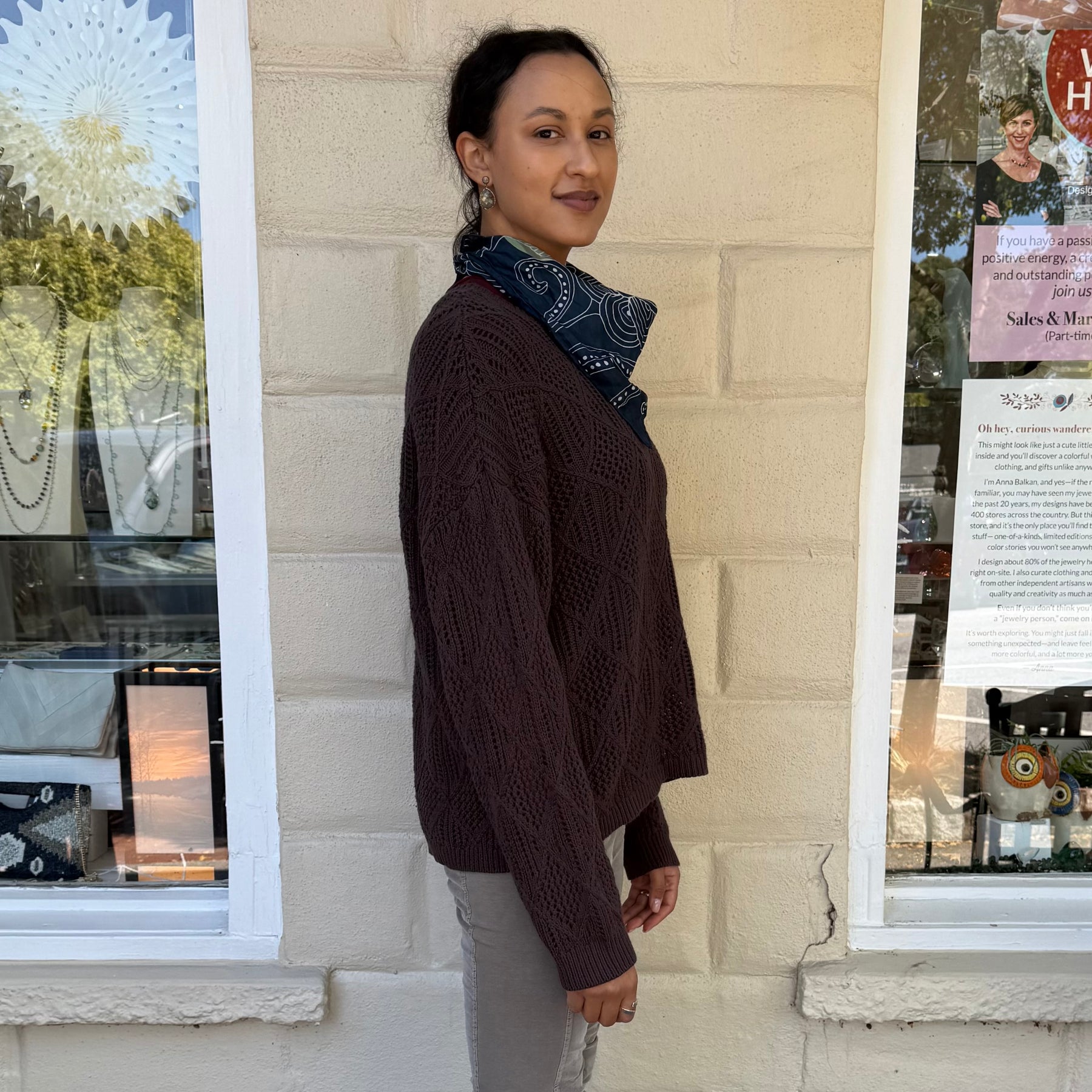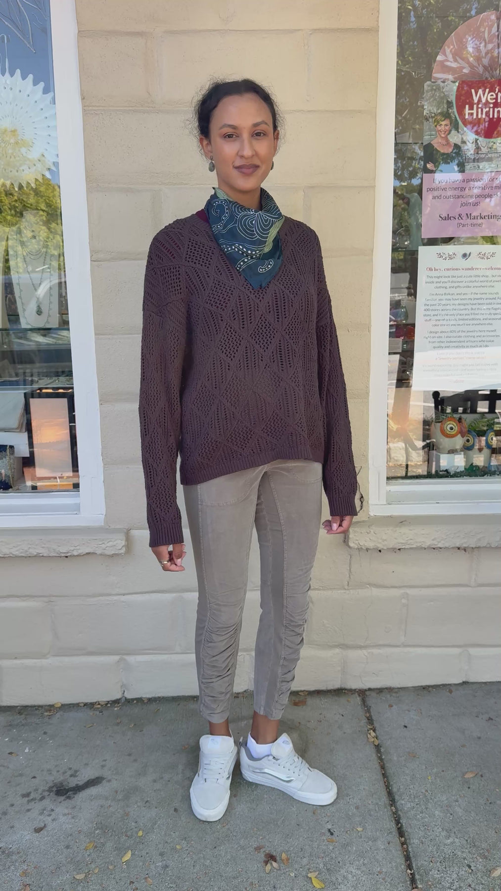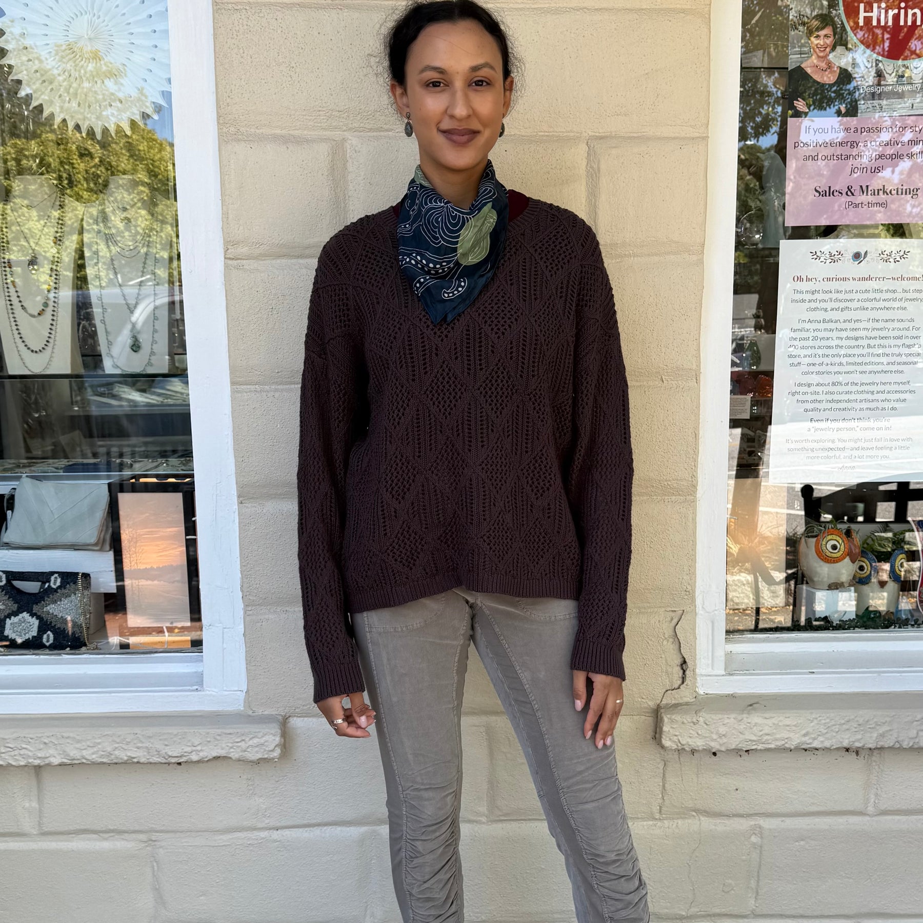 Crochet XCVI bistro pigment color (plum) sweater. 100% cotton