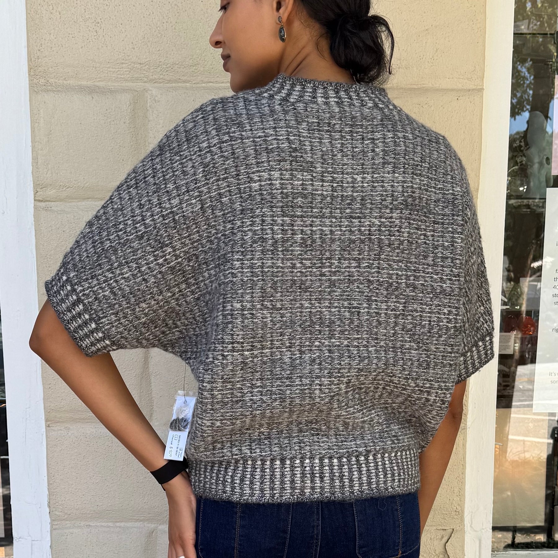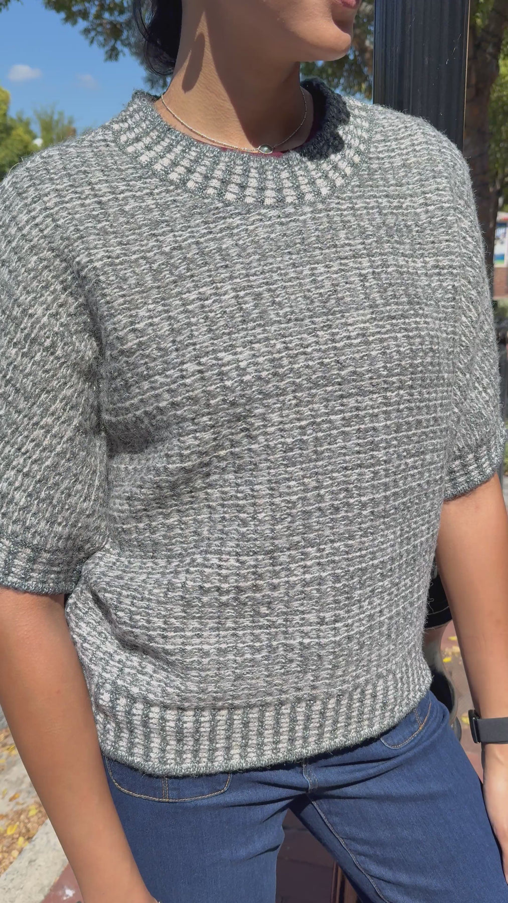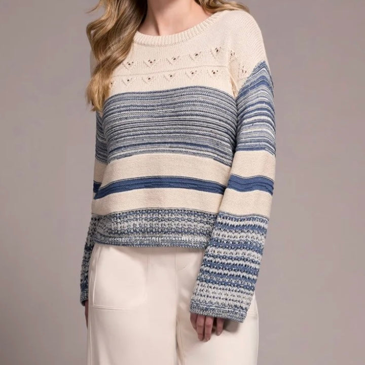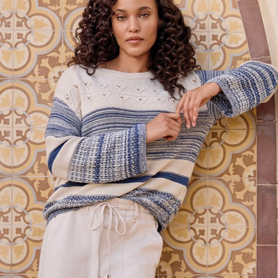 Boat neckline Bell sleeves Color block pattern Lily yarn and slub yarn
