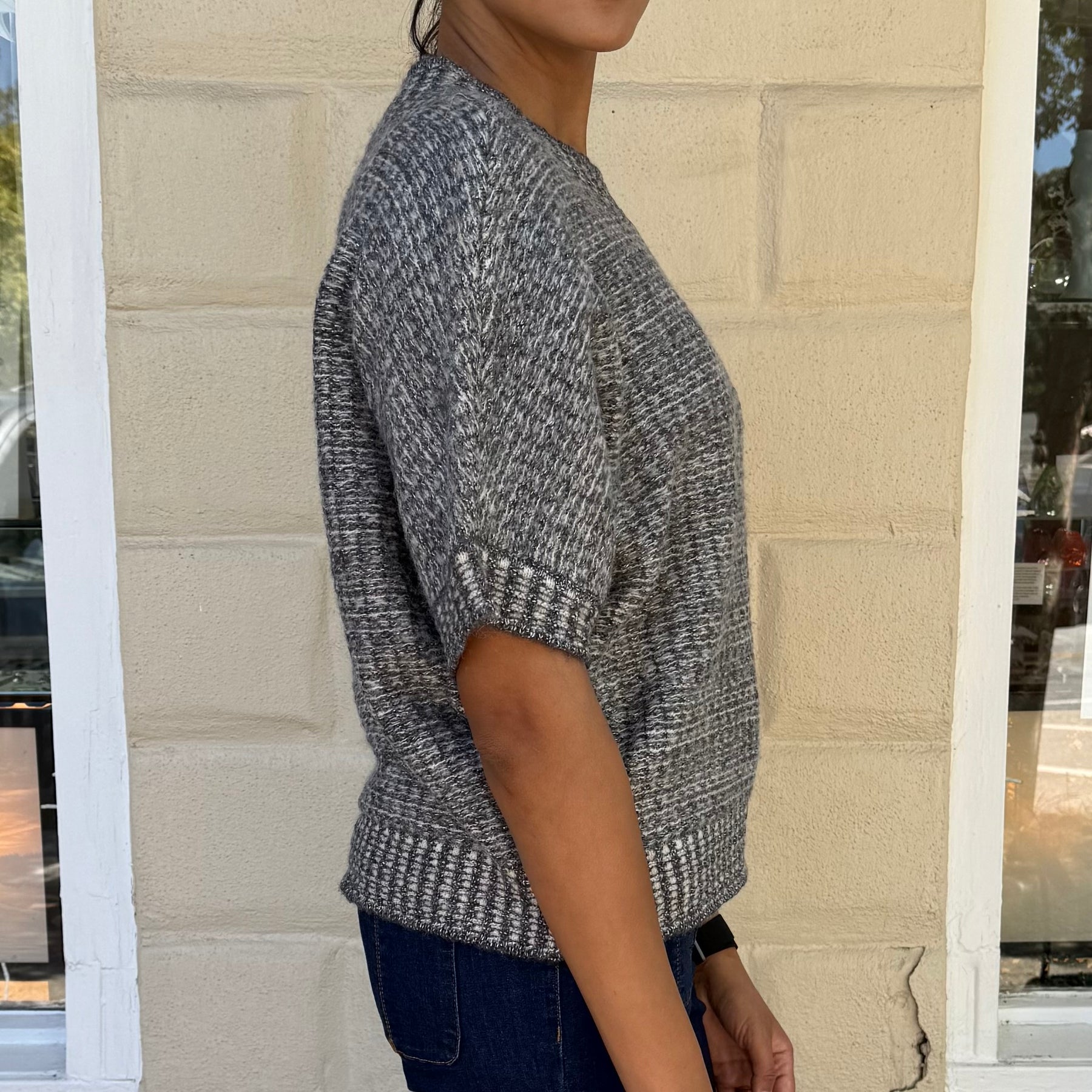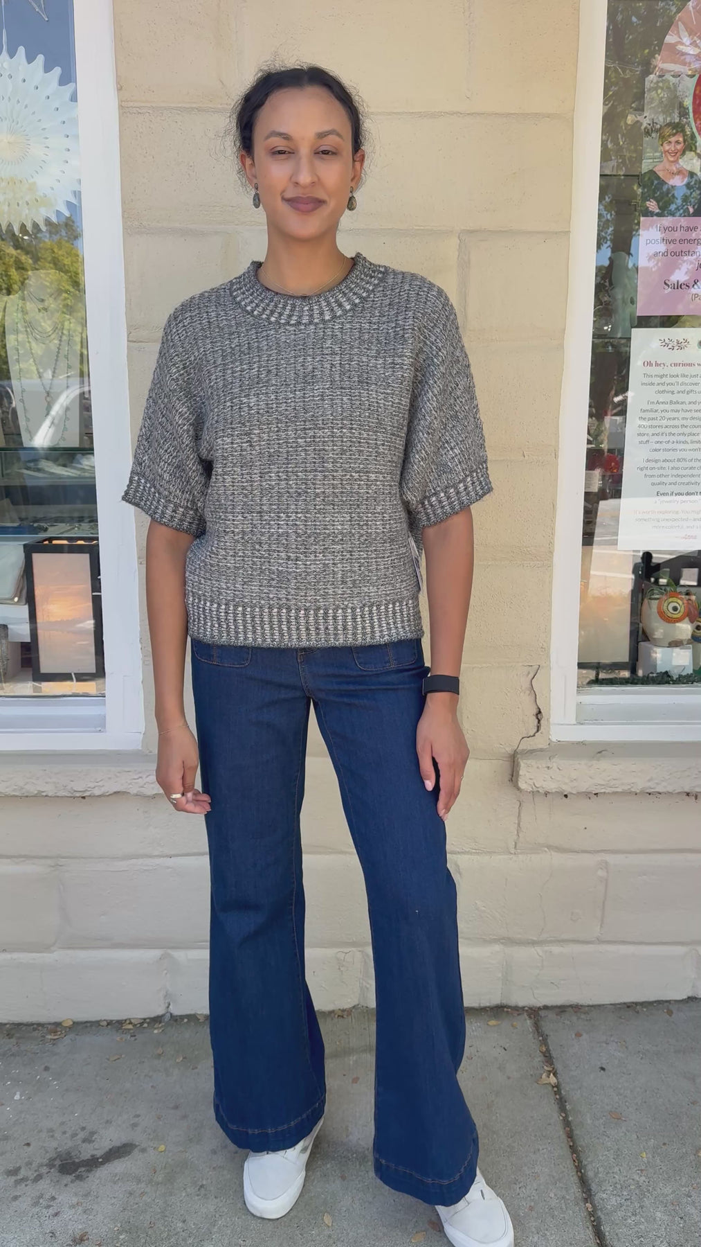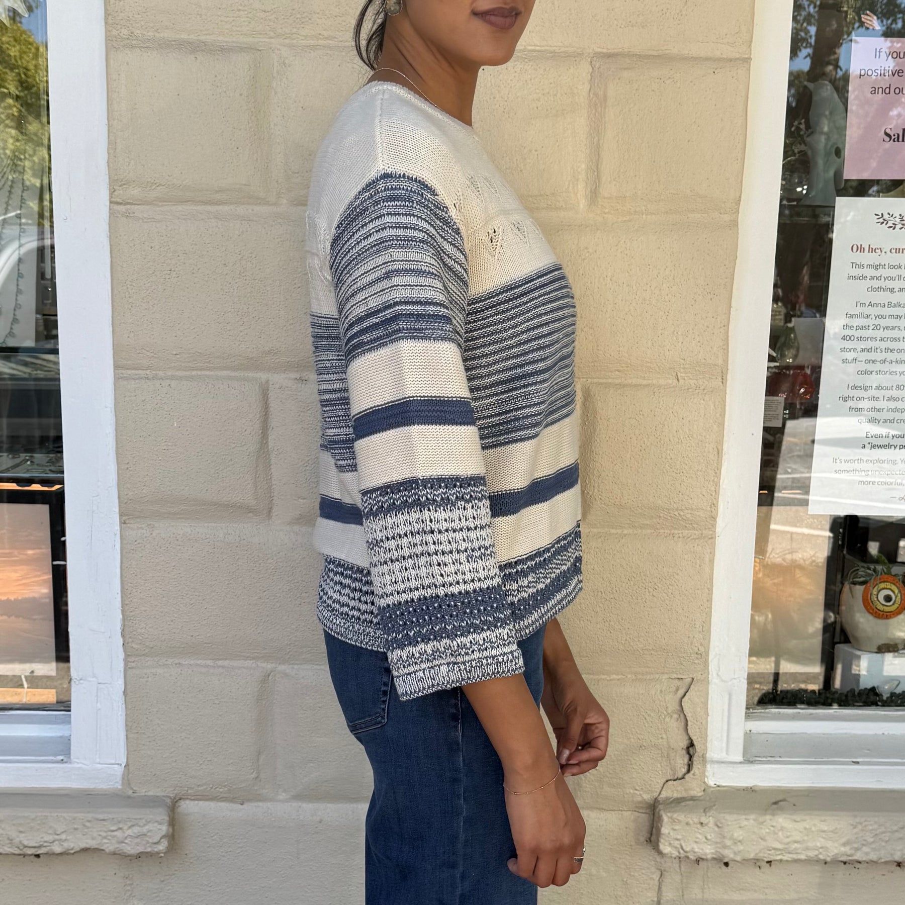 Boat neckline Bell sleeves Color block pattern Lily yarn and slub yarn