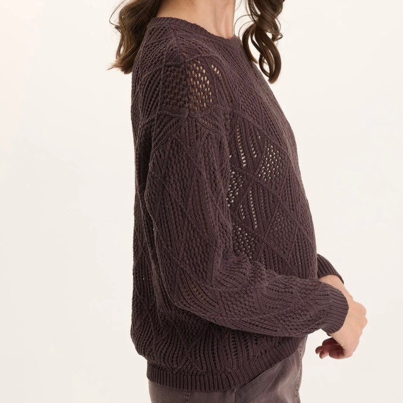 Diamond-knit Cali Cotton graces this long-sleeve, relaxed-fit style. She's like a sweater with the endless possibilities of a lightweight layering piece.