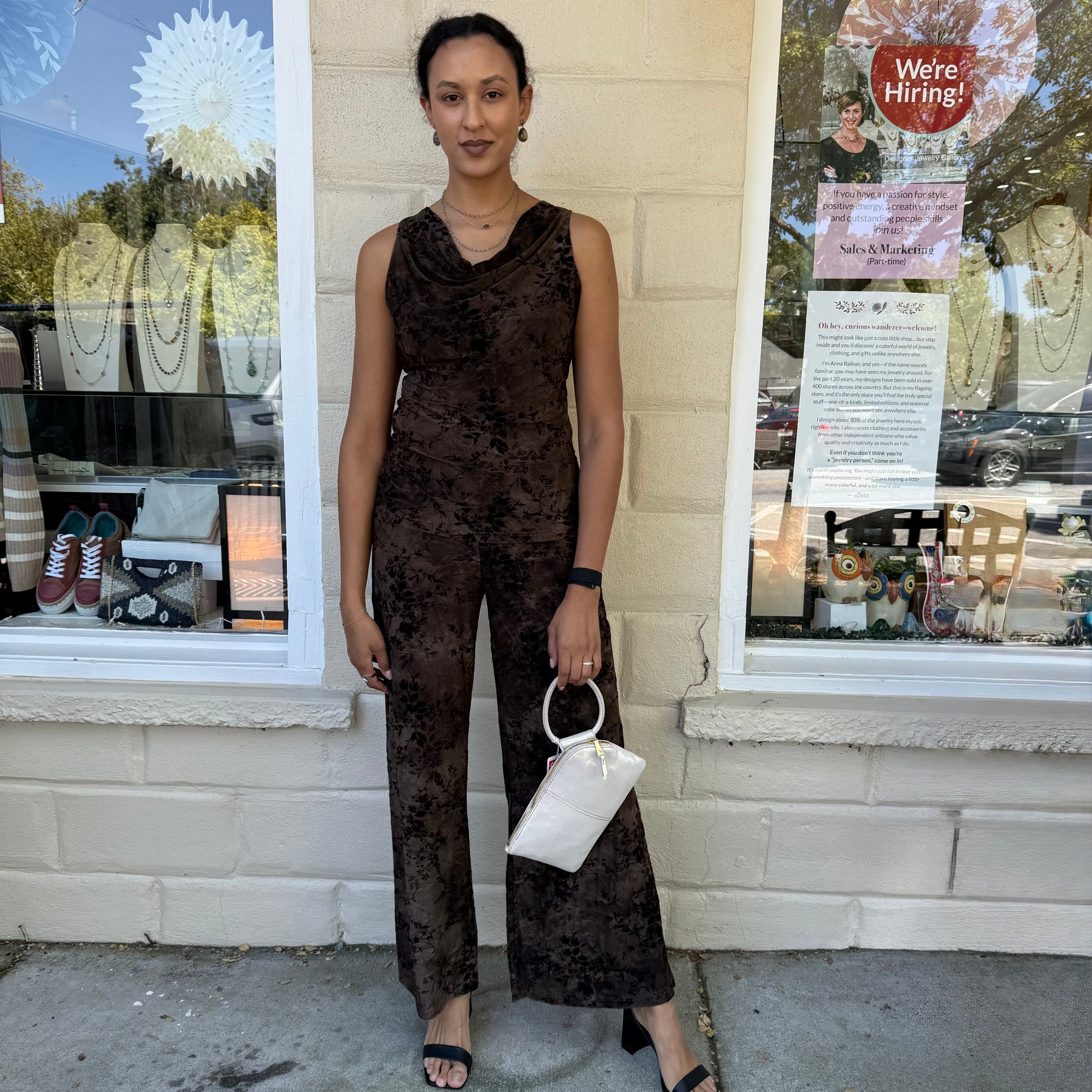 Step into elegance with Paparazzi’s Flocked ITY Collection – featuring the Palazzo Pant and Cowl Neck Tank. Both pieces are crafted from a luxurious nylon-spandex-polyester blend that stretches comfortably, drapes beautifully, and moves with ease.