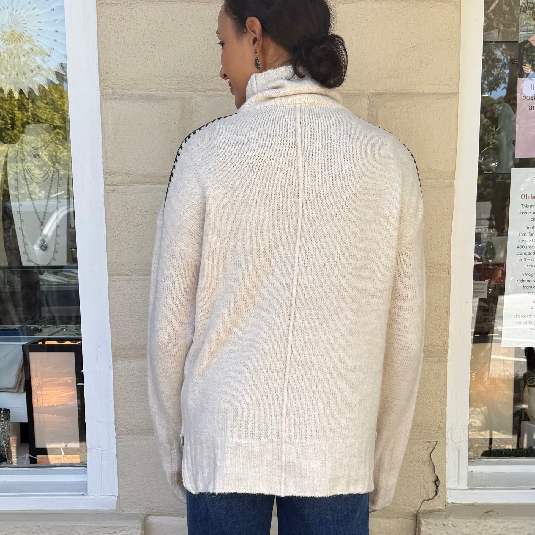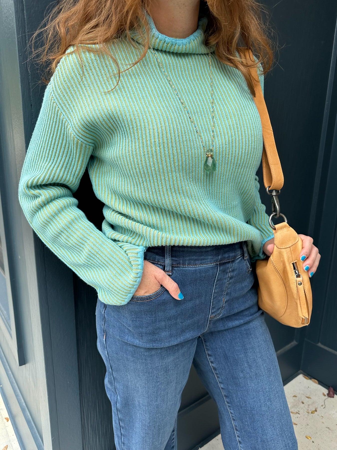 Wrap yourself in warmth with this effortlessly cozy sweater, perfect for crisp days. The funnel neckline and long sleeves offer a snug, stylish fit, while two-toned ribbing adds a unique touch of texture. Crafted from combed cotton, it feels irresistibly soft and remains comfortably breathable all day long.
