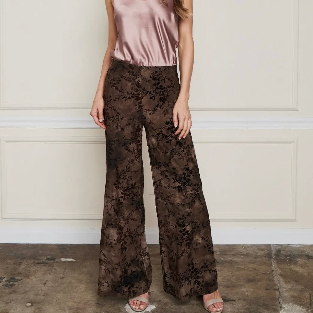 The Flocked ITY Palazzo Pant is designed with a modern western-inspired flair. Its wide-leg, floor-length silhouette brings bold sophistication to any look, while the soft stretch fabric ensures all-day comfort. Perfect for both casual outings and special occasions.