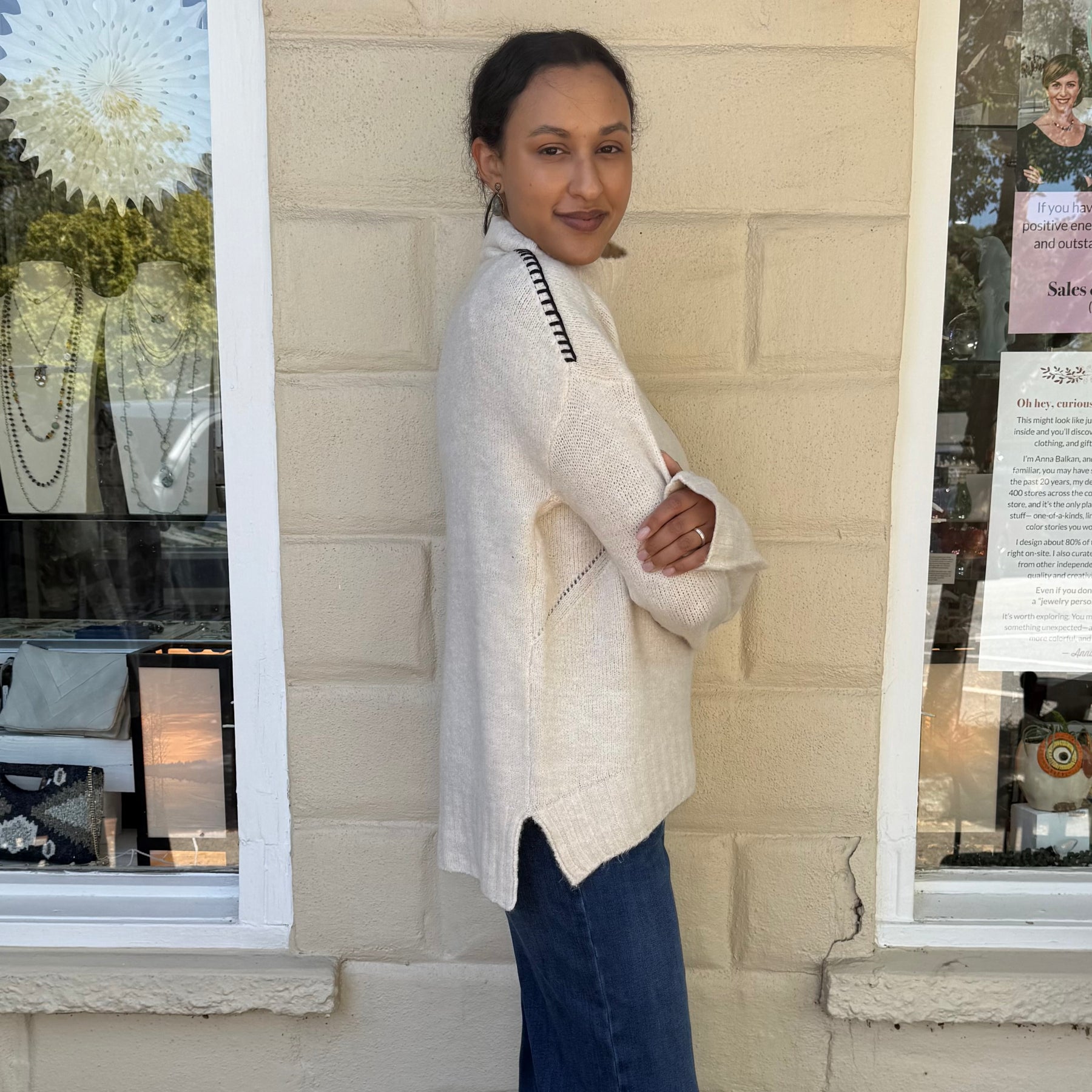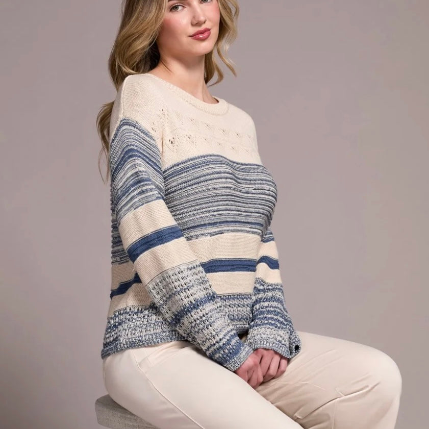Slip into everyday comfort with the Audrey Girlfriend Sweater by Tribal. Designed with a relaxed fit and crafted from soft poly-acrylic yarn, this cozy knit keeps you warm without sacrificing style. A classic crew neckline and long sleeves make it an easy go-to, while exaggerated saddle stitching along the neck, shoulders, and hem adds a modern touch of structure.