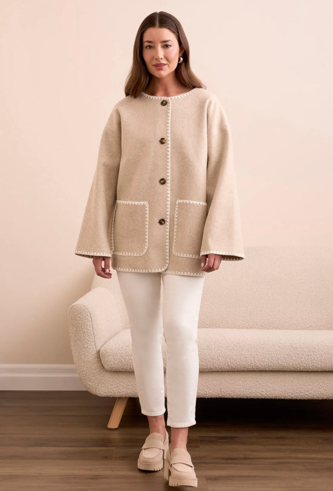 Perfect for layering, this coat effortlessly balances warmth and elegance, making it an essential piece for fall through spring.