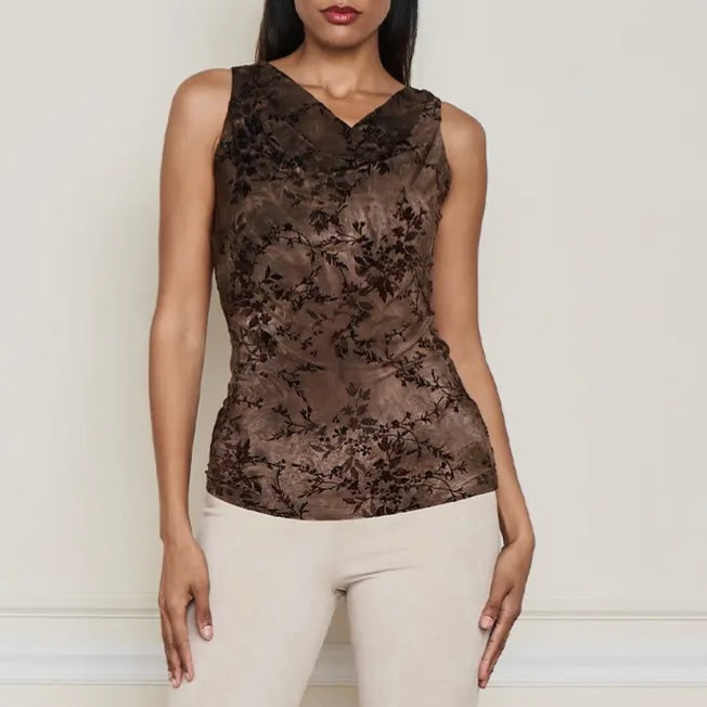 The Flocked ITY Cowl Neck Tank offers a flattering sleeveless profile with a draped cowl neckline. Lightweight and wrinkle-resistant, it transitions effortlessly from day to night. Whether layered under a blazer or styled solo, it’s a chic essential.