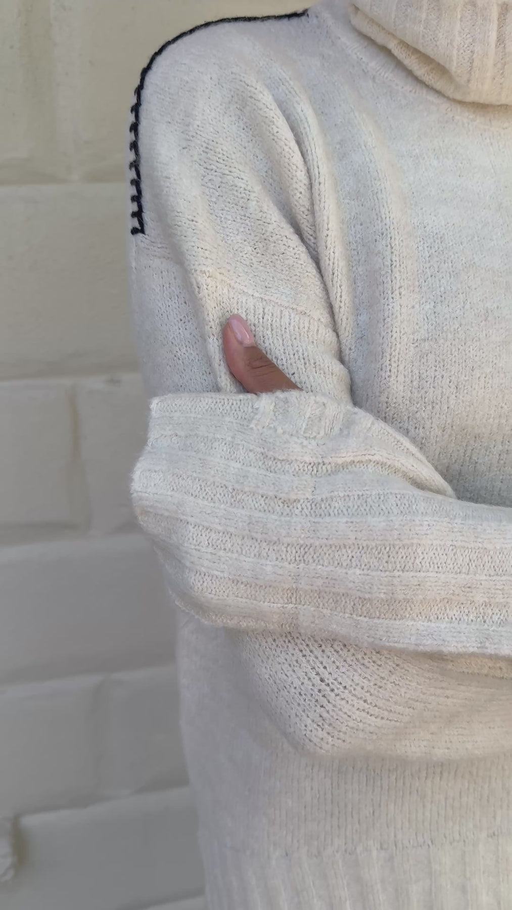 Funnel neck Long sleeves Two-tone ribbing Combed cotton