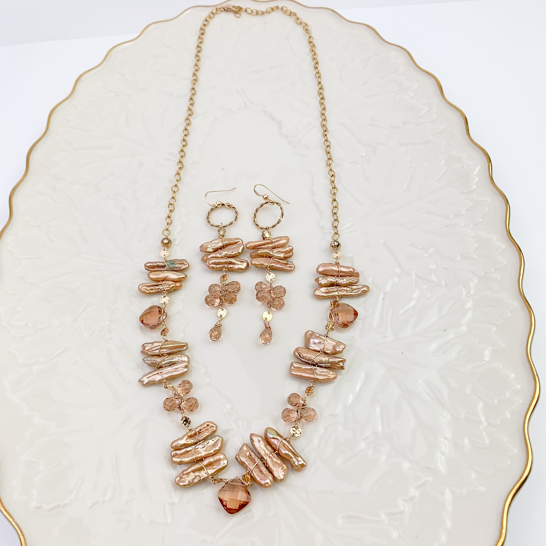• Tea Topaz and freshwater pearls