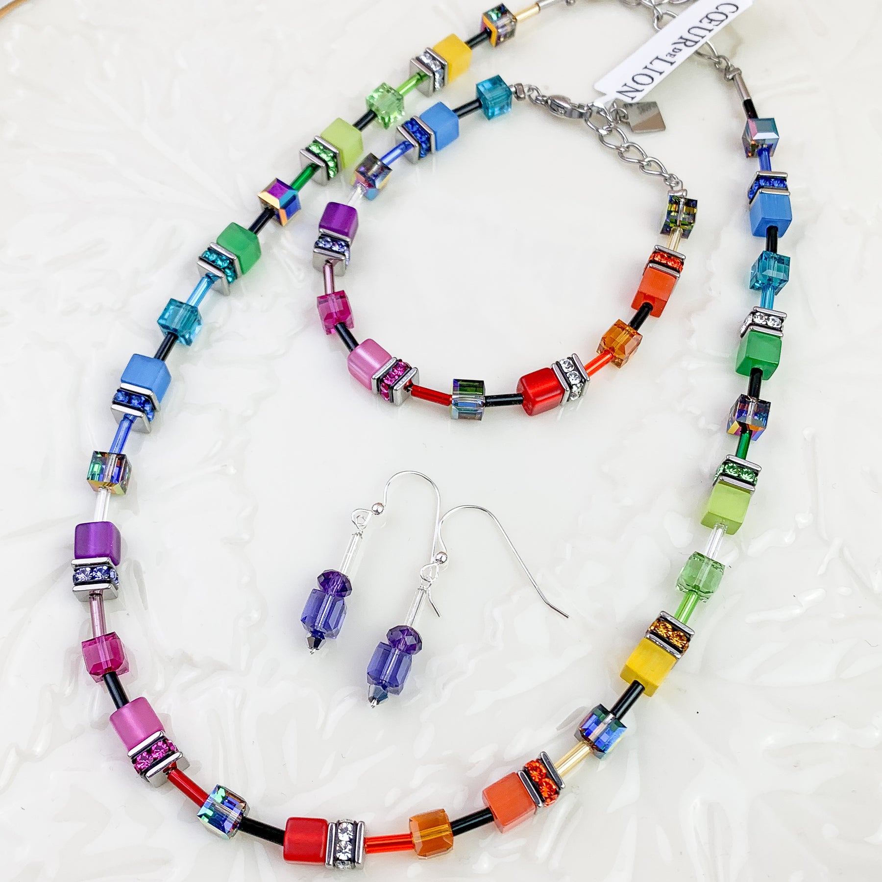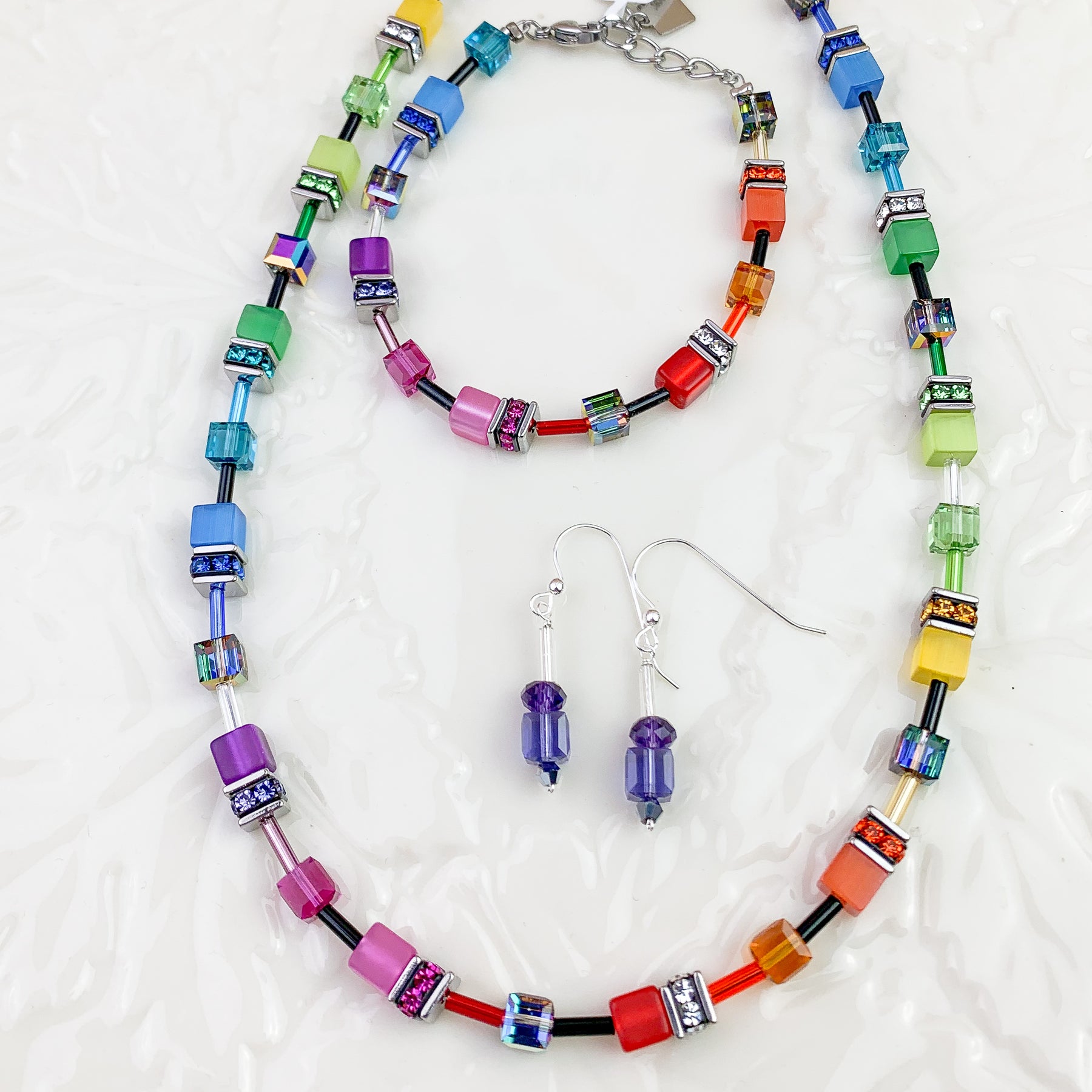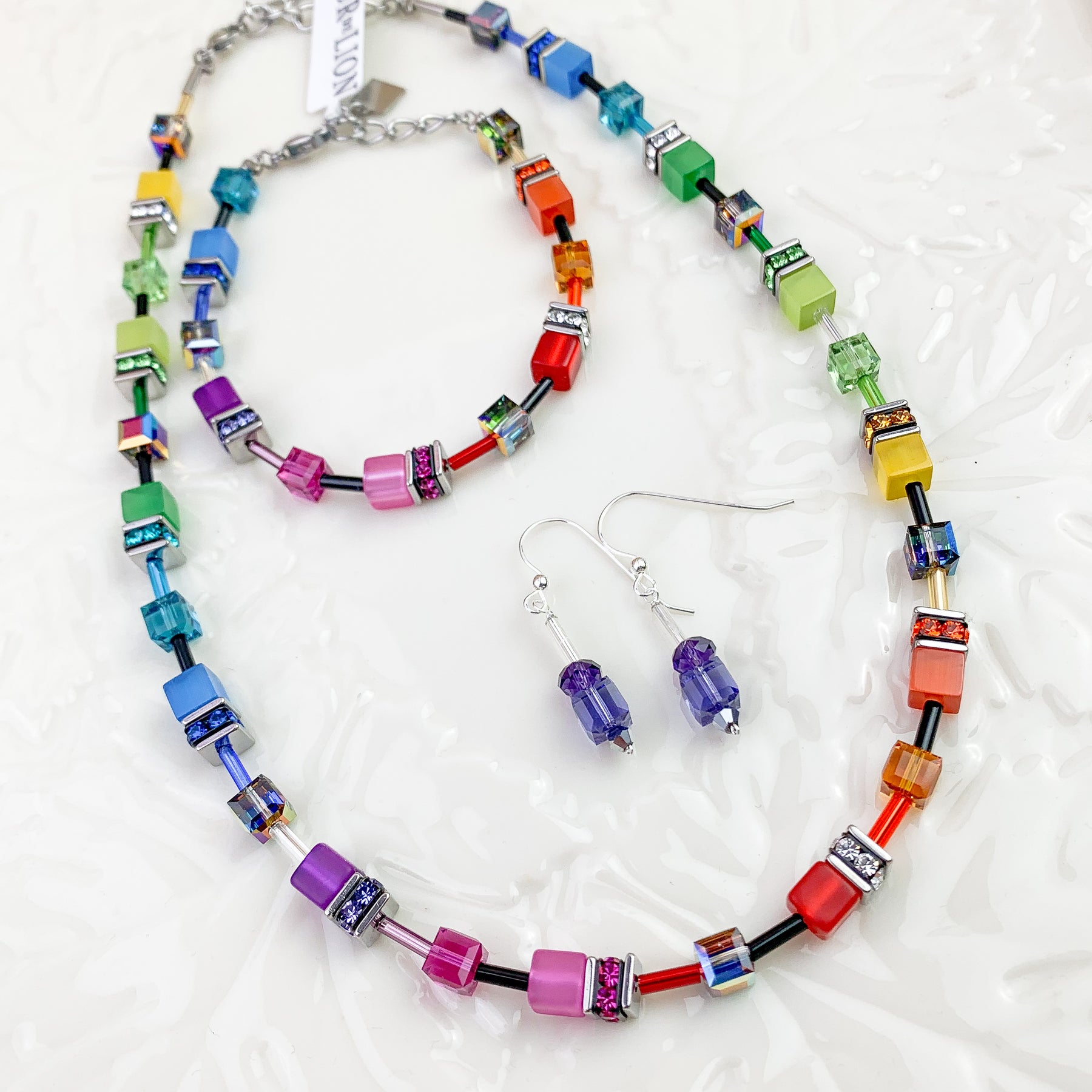 The matching earrings echo the same palette in a lighter, playful scale, combining blue kyanite, blue-green kyanite, green gems, and blue silverite/seraphinite for subtle sparkle and gentle movement. Designed to be worn together or styled separately, these pieces feel organic, airy, and quietly expressive.