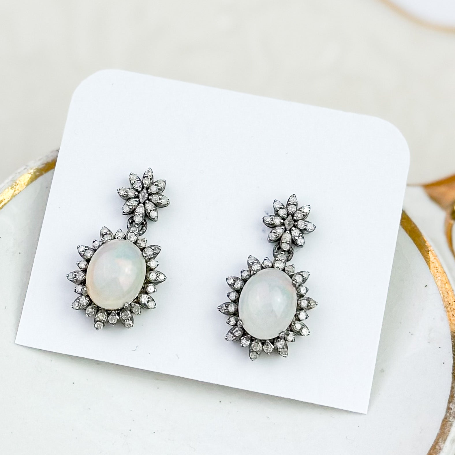 Crimson Glow | Ruby & Pavé Diamond Silver Earrings (OOAK)