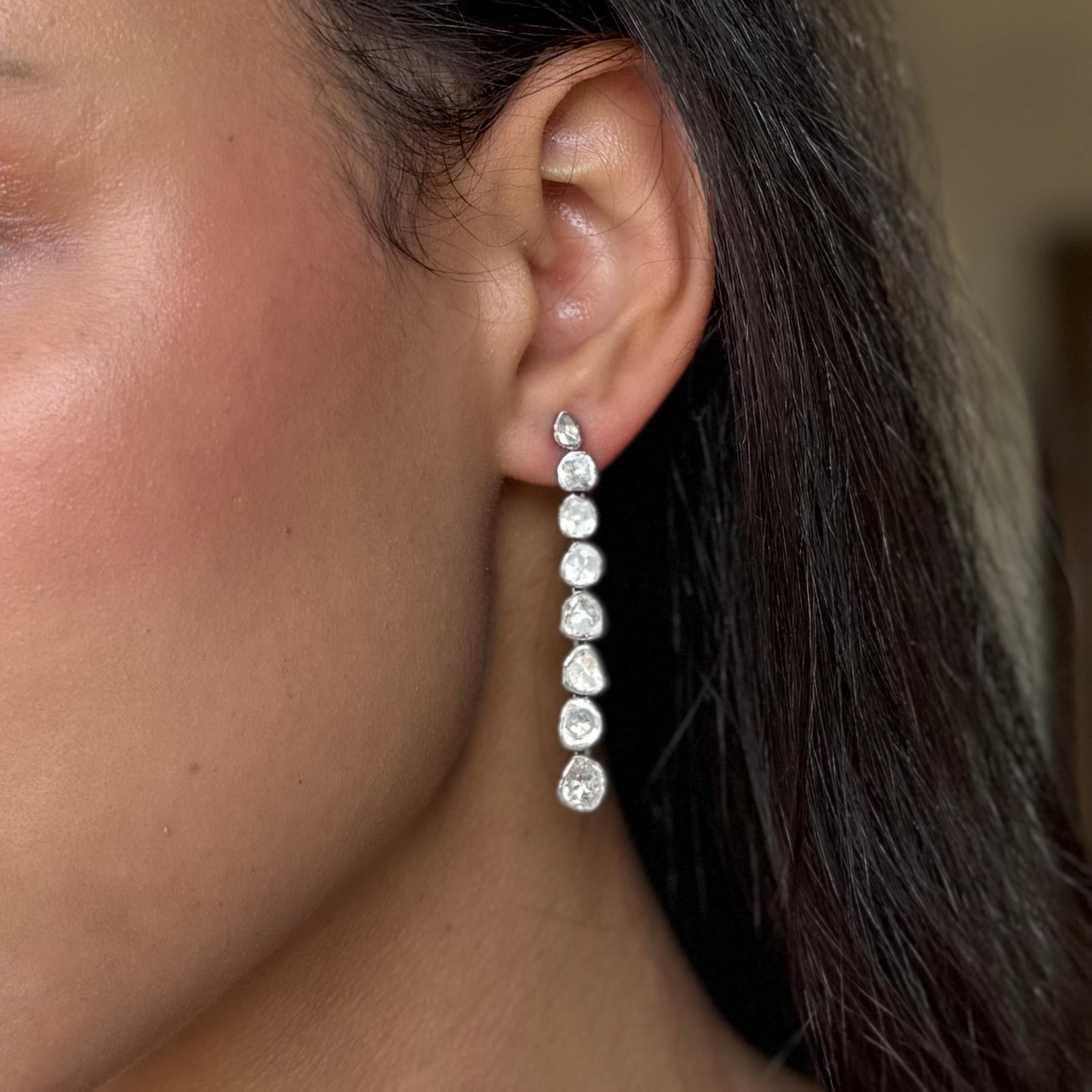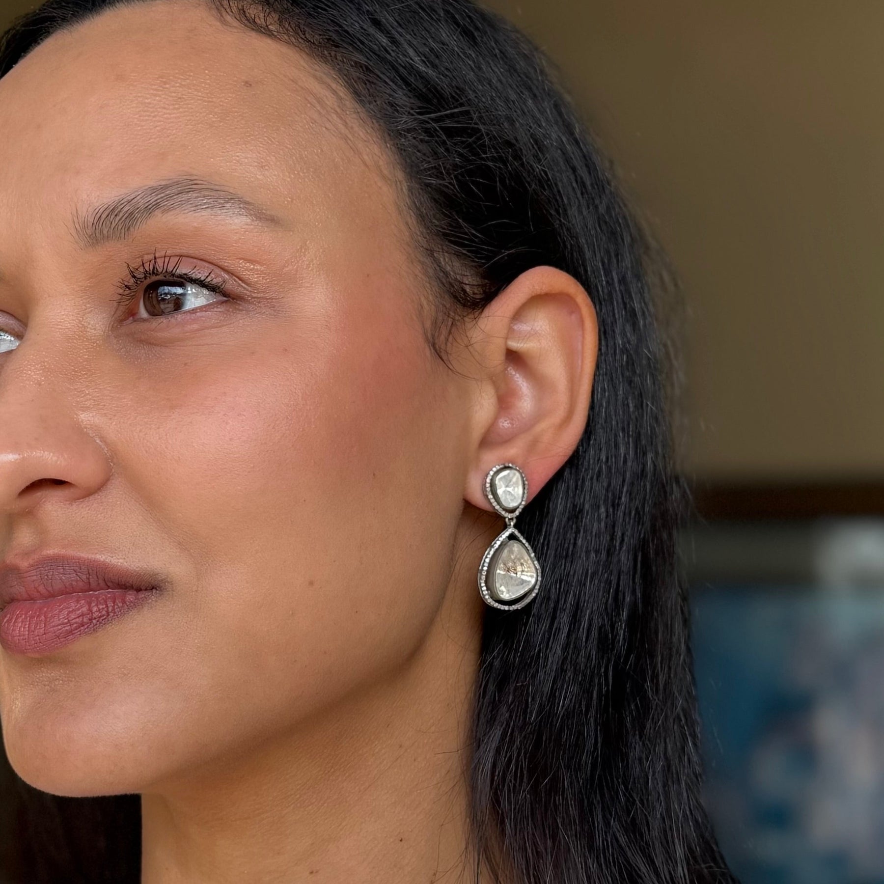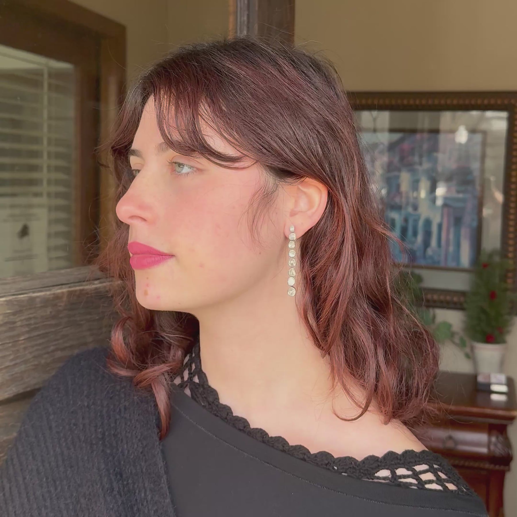 Finished in sterling silver and measuring approximately 2 inches in length, these earrings offer comfortable wear with just the right amount of presence. A striking OOAK piece meant to be worn often, not saved for special occasions.