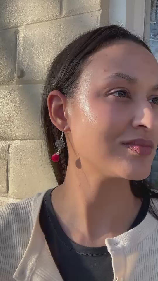 These one-of-a-kind sterling silver earrings feature vivid ruby gemstones, known for their deep red hue and association with passion, vitality, and strength. The faceted ruby drops bring depth and movement, creating a striking yet refined look.
