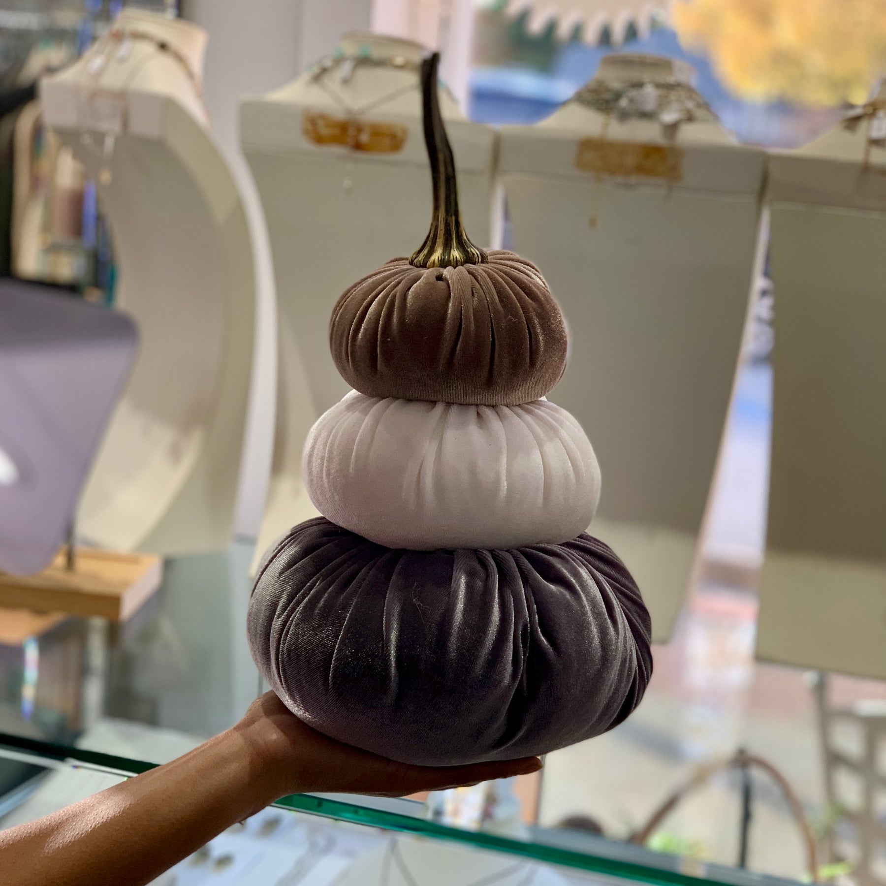 Velvet Pumpkins – Medium, Large & 3-Tier | Grey, Taupe & Ivory
