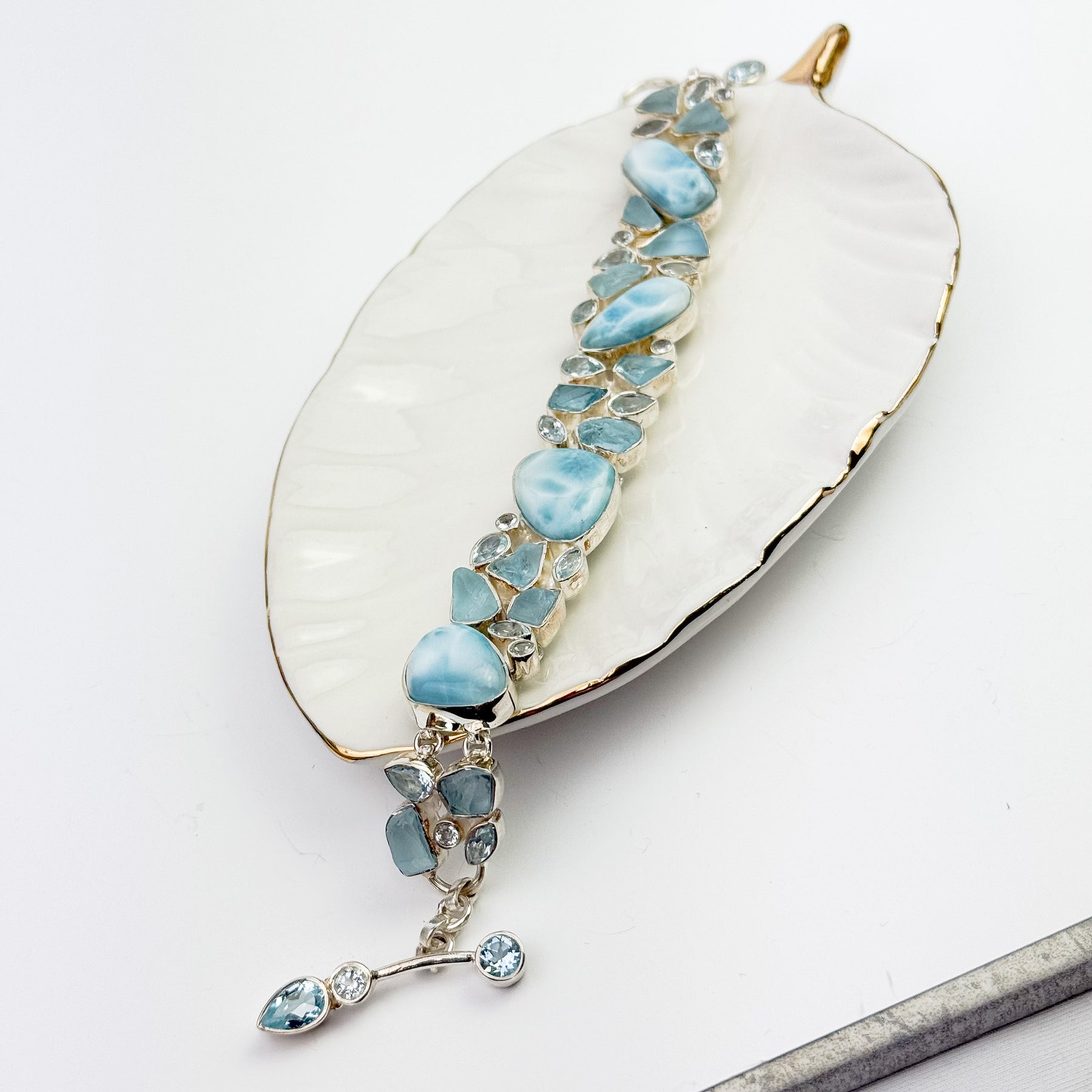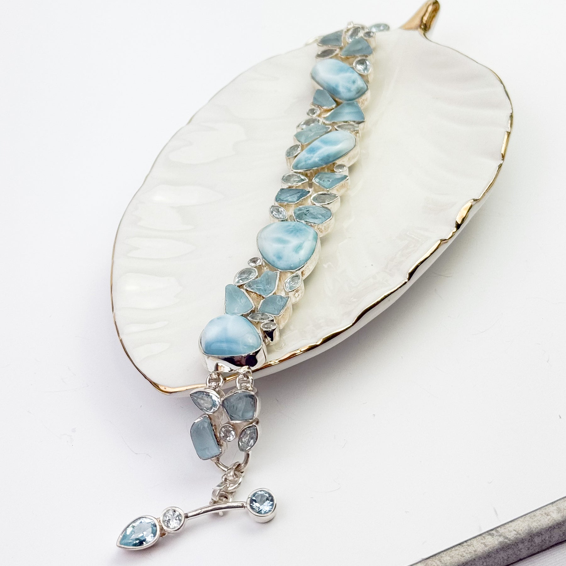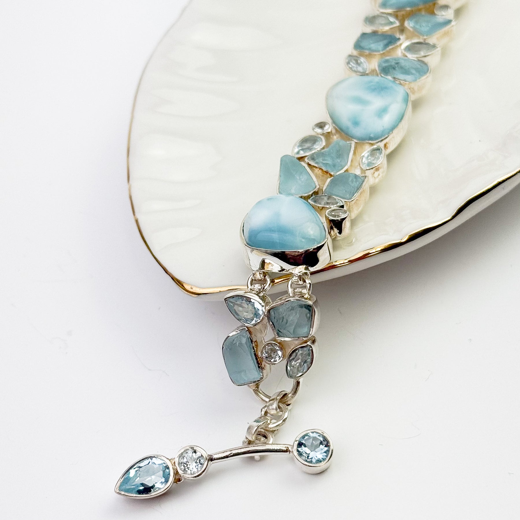 This heirloom-worthy necklace is a true work of art—handcrafted in solid sterling silver and set with over 30 glowing Rainbow Moonstones in a graceful, cascading silhouette. Each gem is uniquely shaped and full of that unmistakable inner glow, catching the light with every movement.