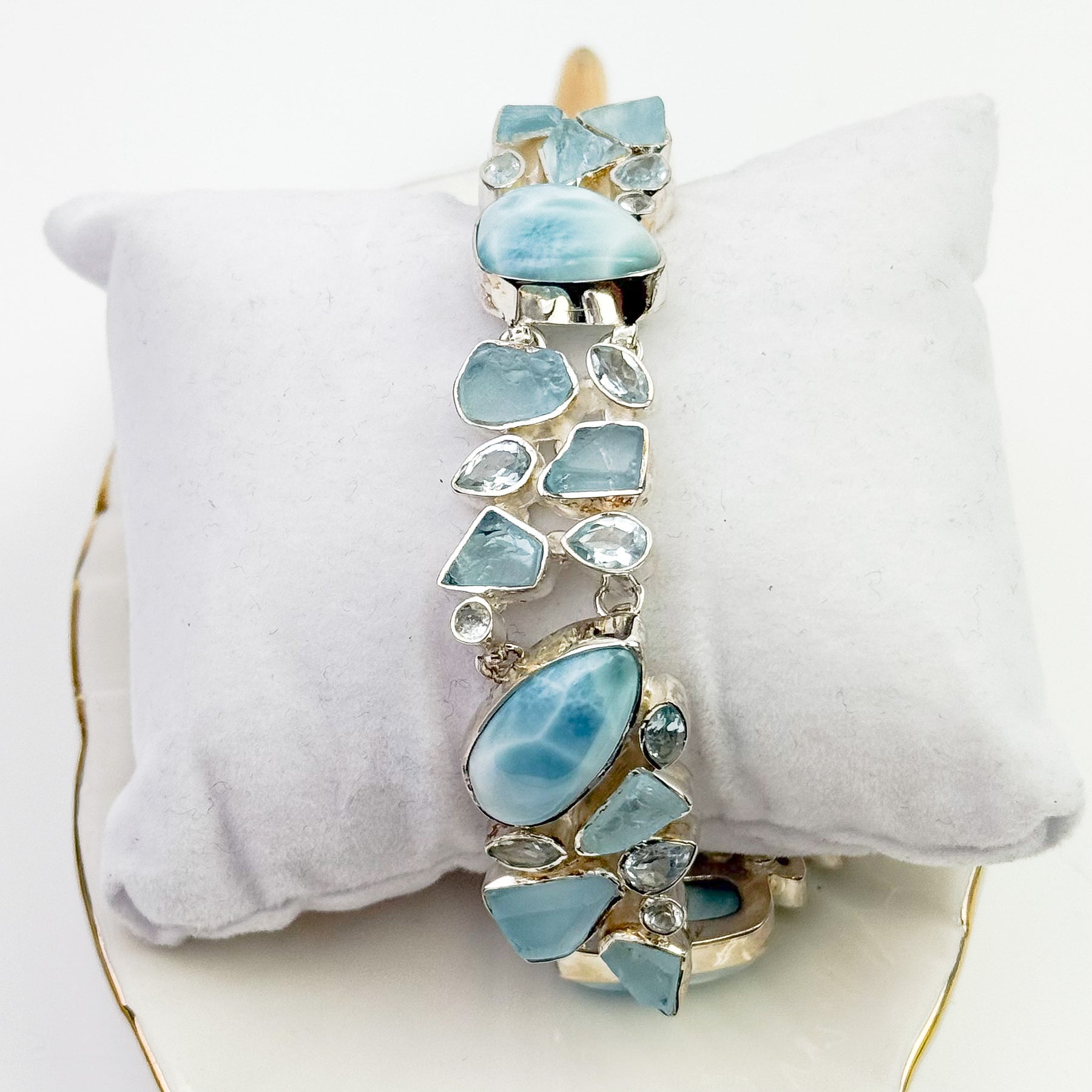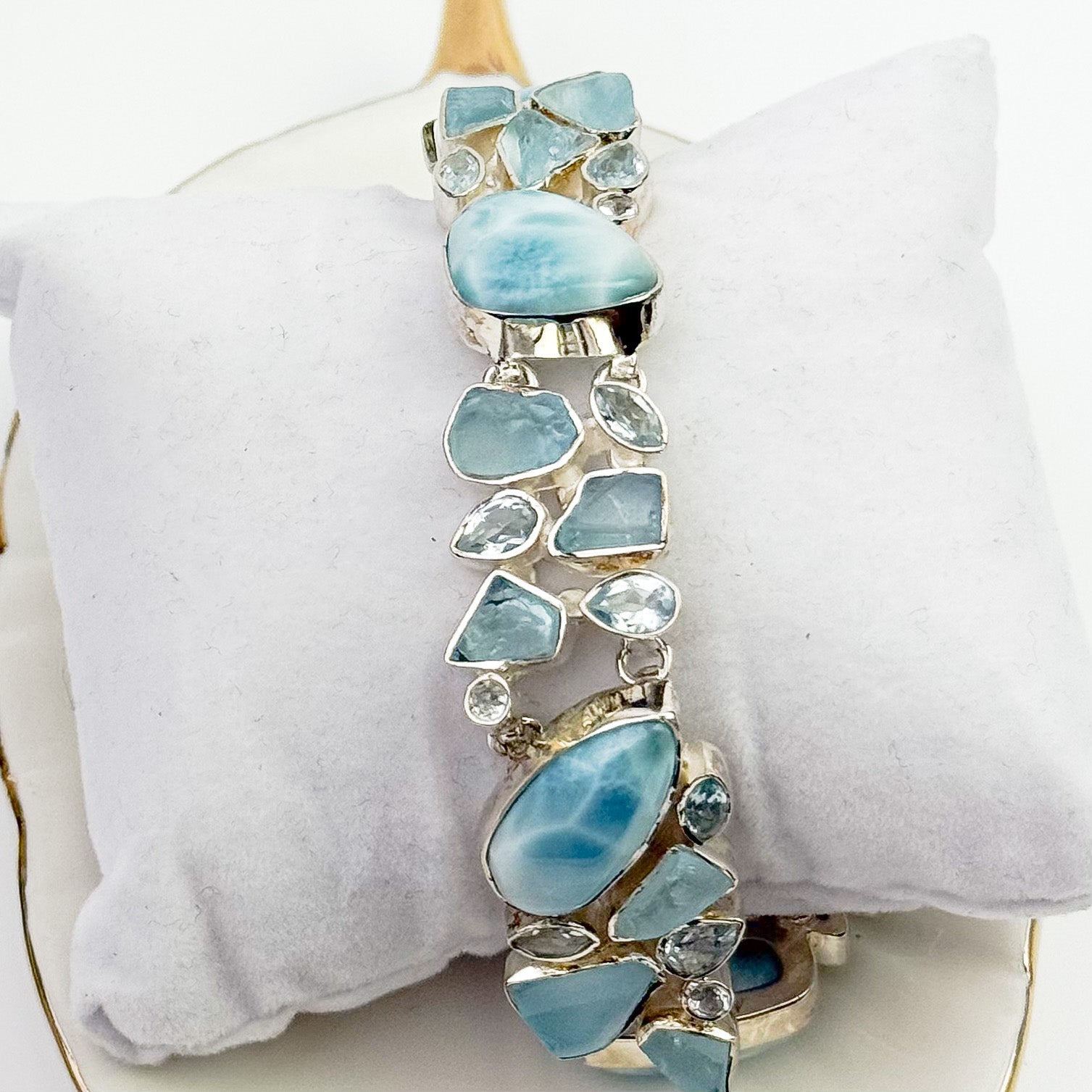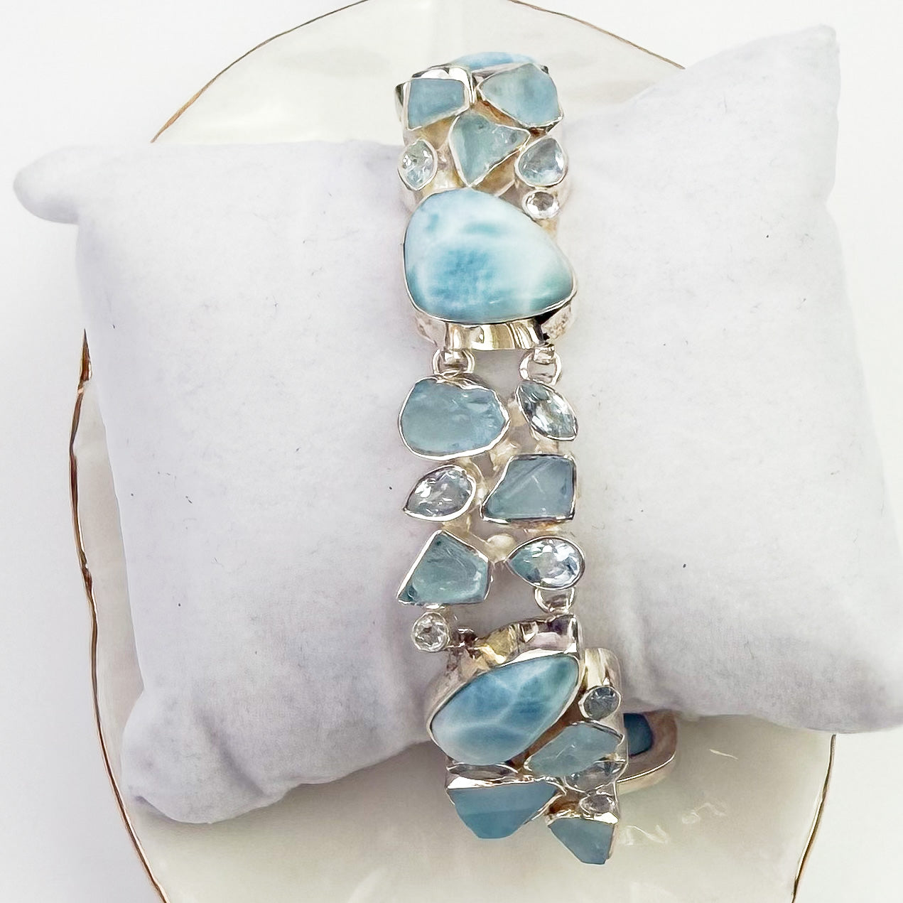 This heirloom-worthy necklace is a true work of art—handcrafted in solid sterling silver and set with over 30 glowing Rainbow Moonstones in a graceful, cascading silhouette. Each gem is uniquely shaped and full of that unmistakable inner glow, catching the light with every movement.