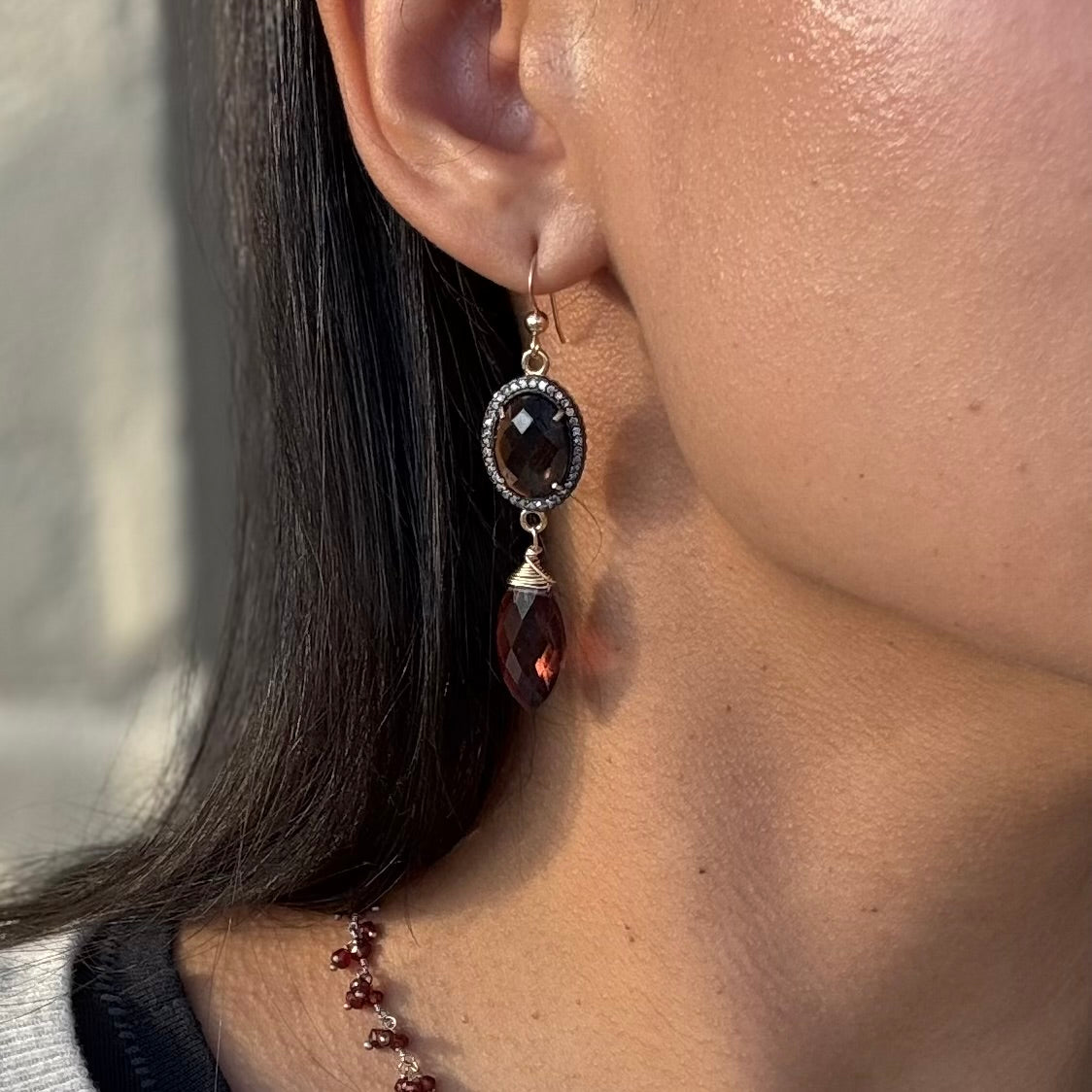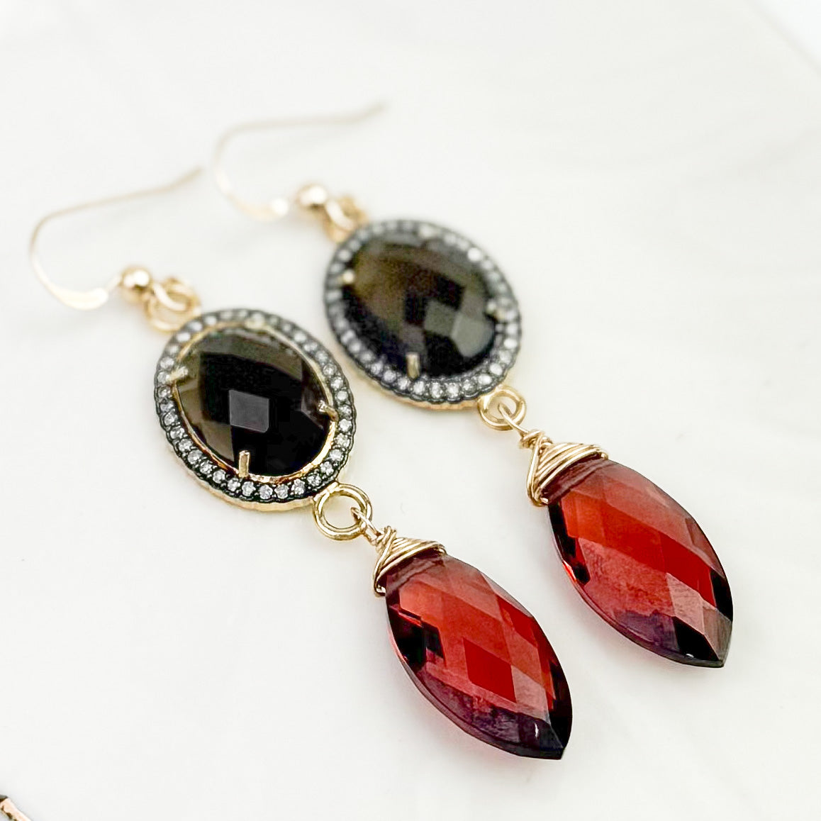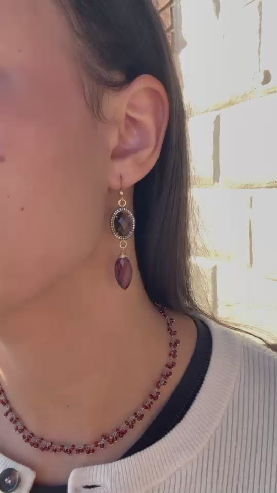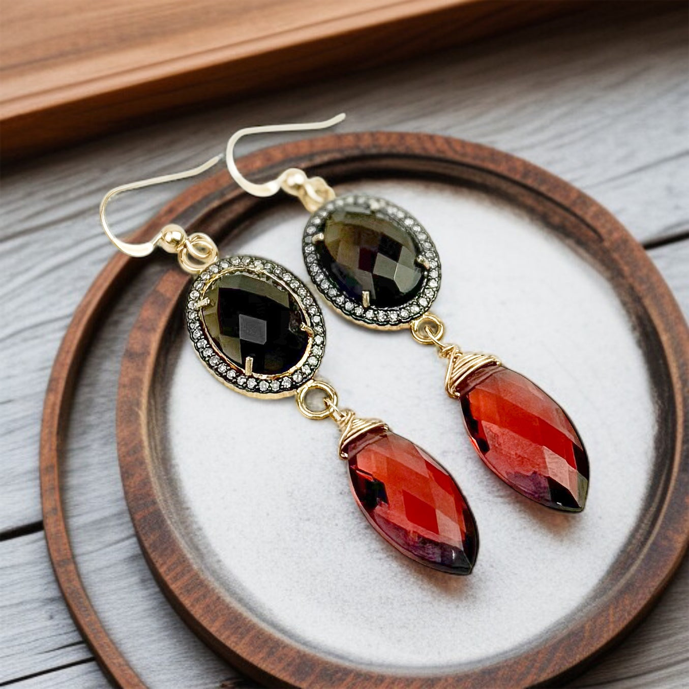 The adjustable lariat necklace offers effortless versatility — wear it long and fluid or adjust for layered styling. The coordinating earrings echo the same gem story, adding gentle movement and elegance with every turn of the head.