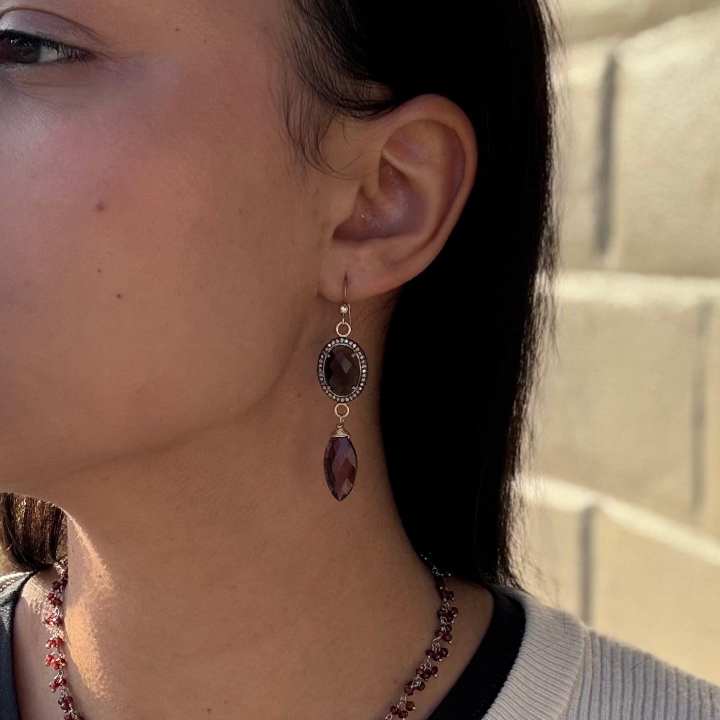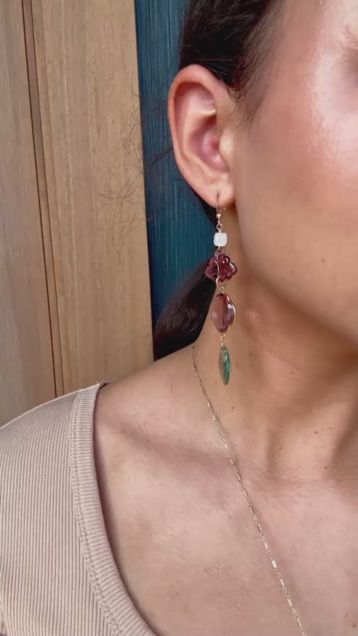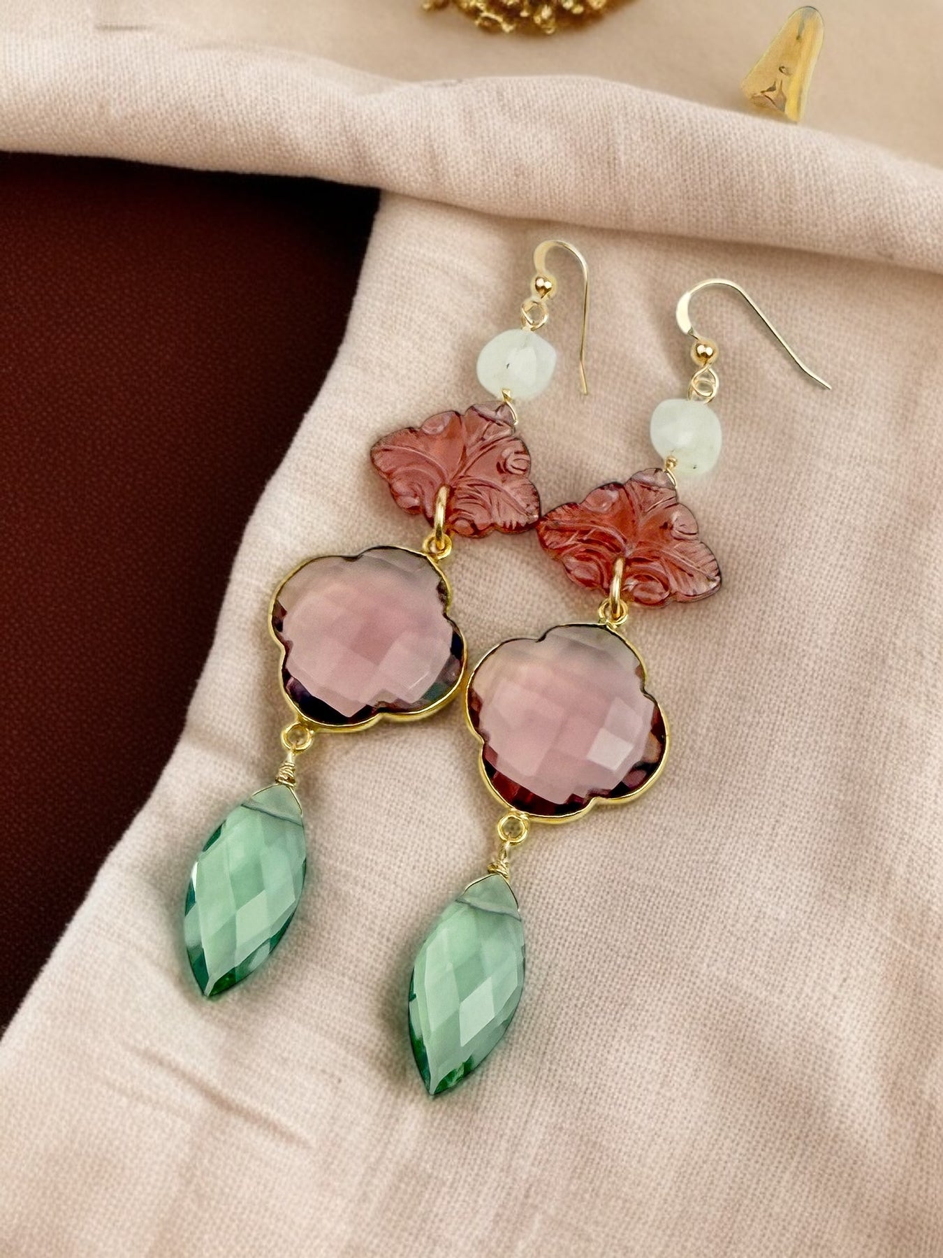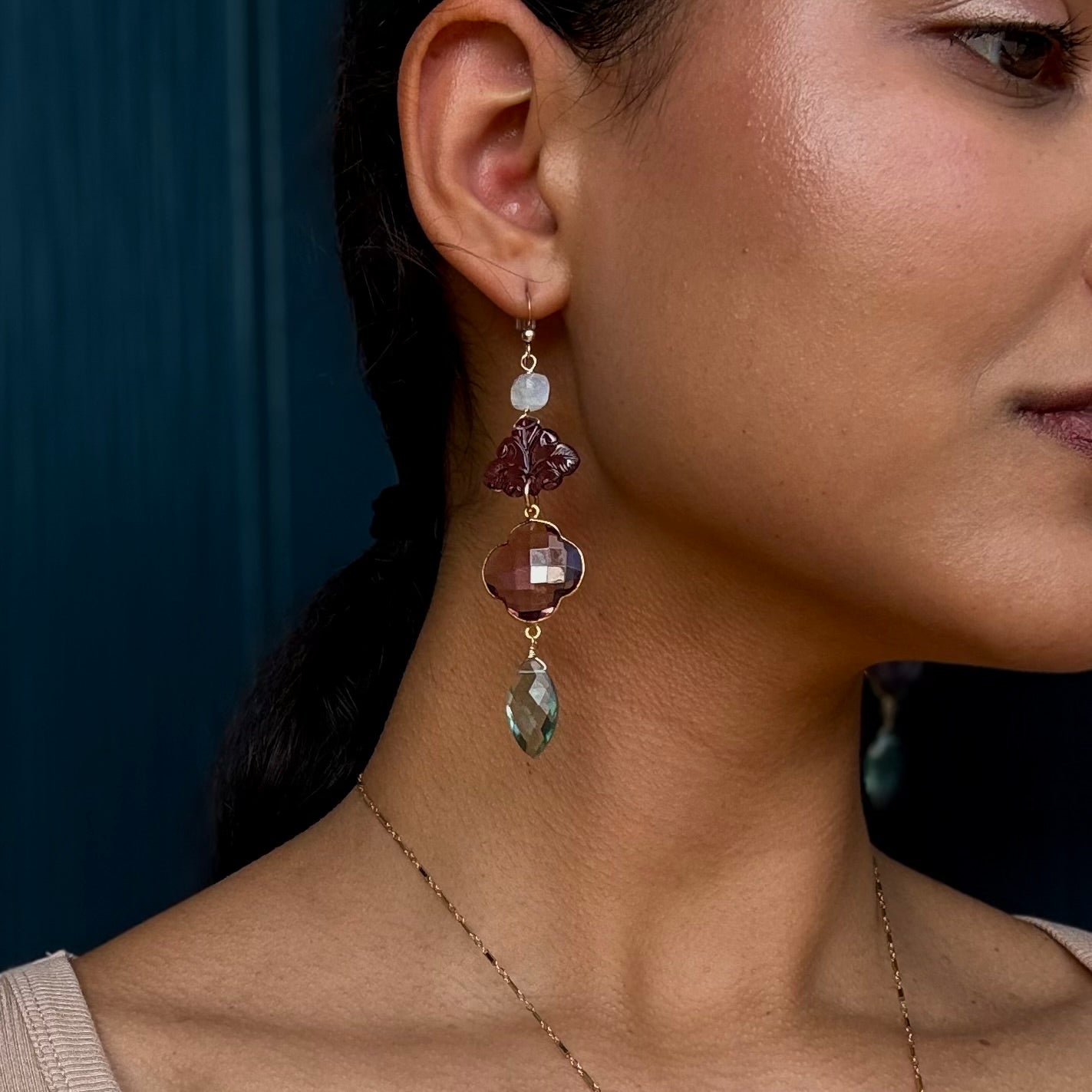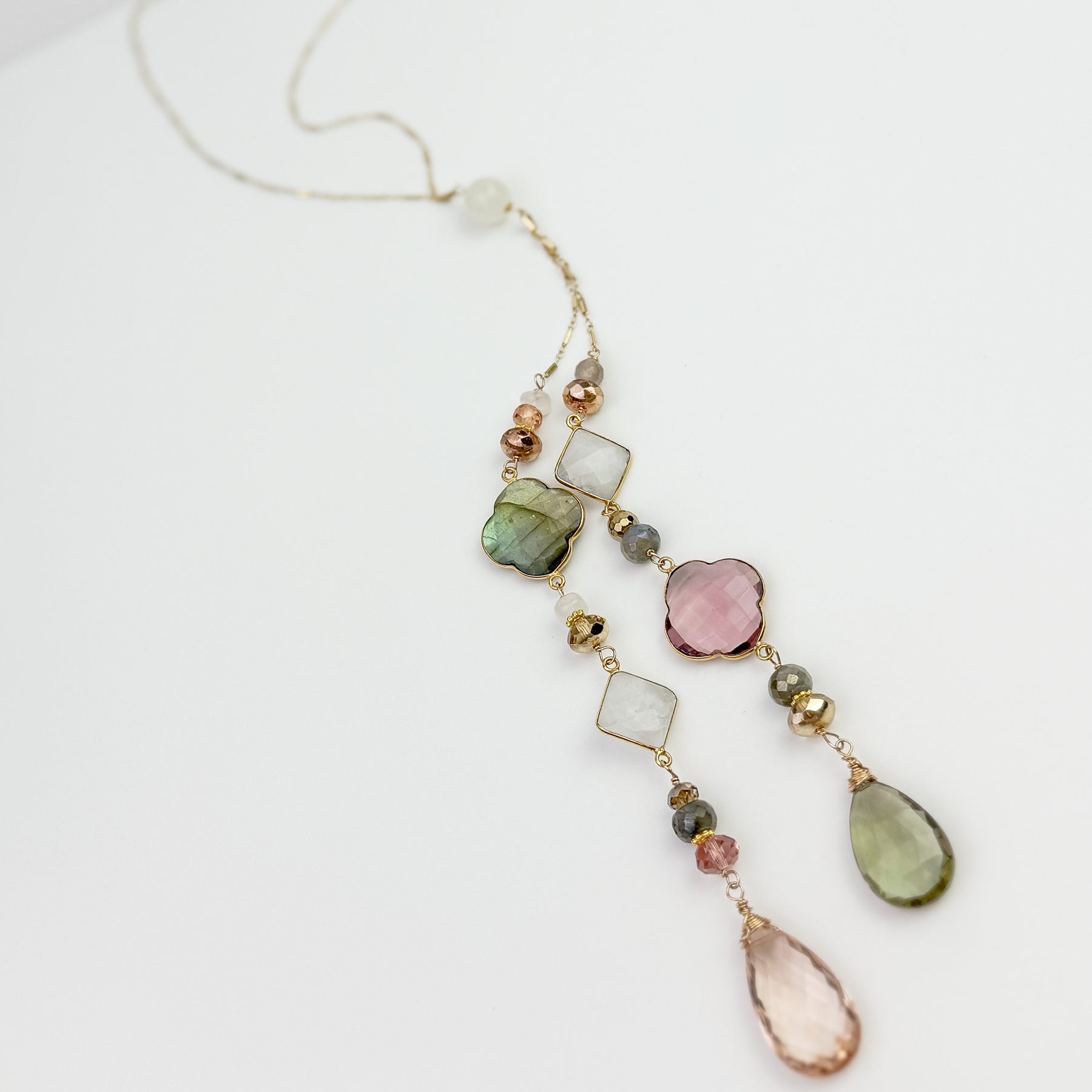 Delicate, expressive, and quietly romantic, the Whispered Petals Lariat & Earring Set is a one-of-a-kind pairing designed to move with grace. Marsala Quartz, Labradorite, Green Amethyst, and Moonstone come together in soft, balanced tones that feel feminine yet grounded.